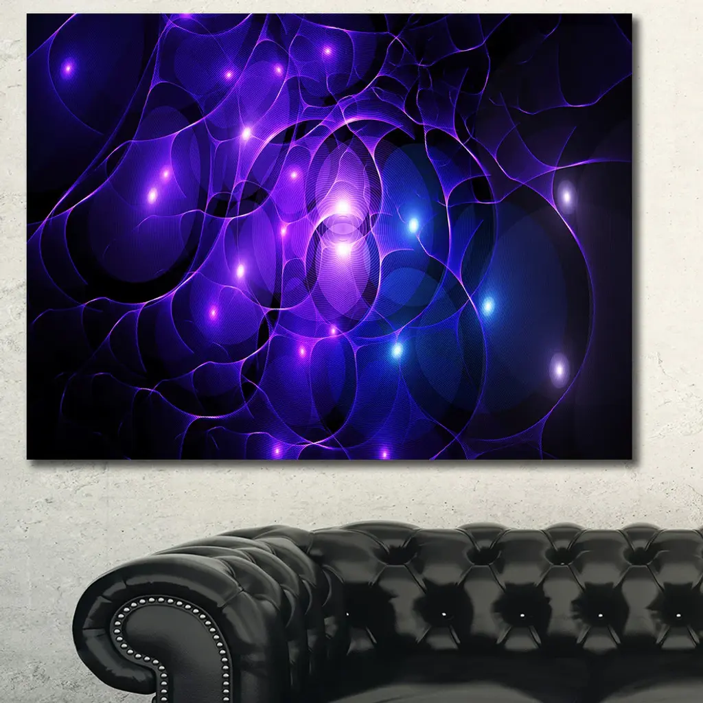 Blue Fractal Space Circles, Oversized Abstract Canvas Art Print, 60x40
