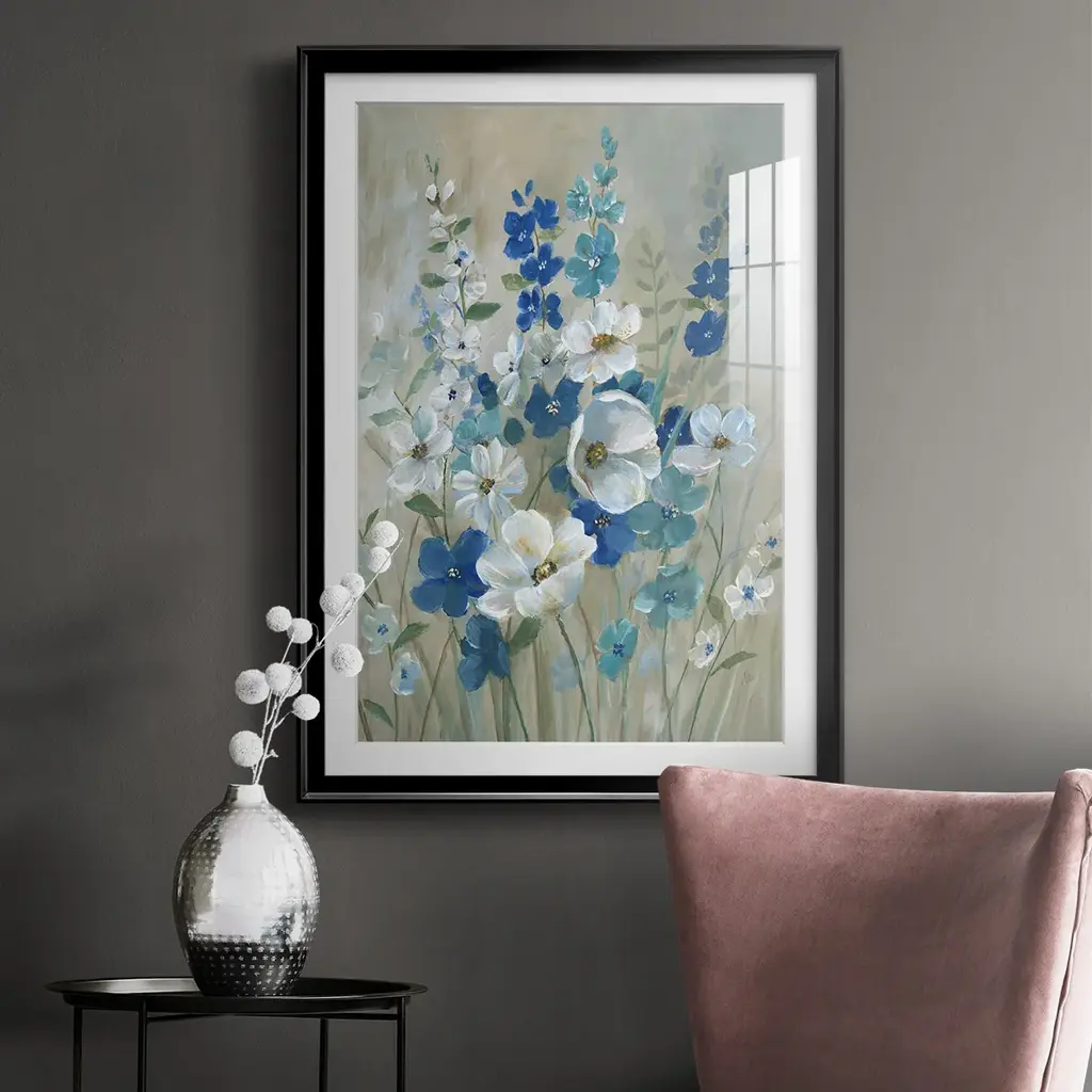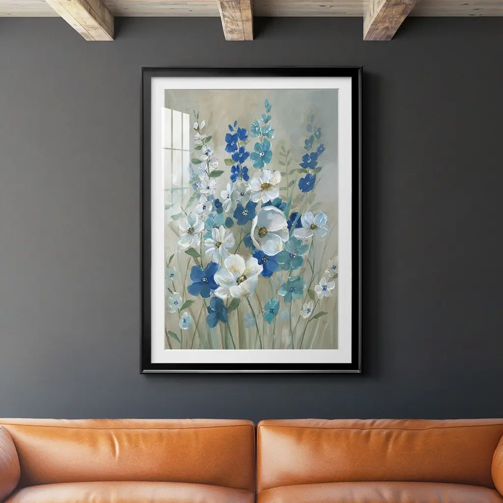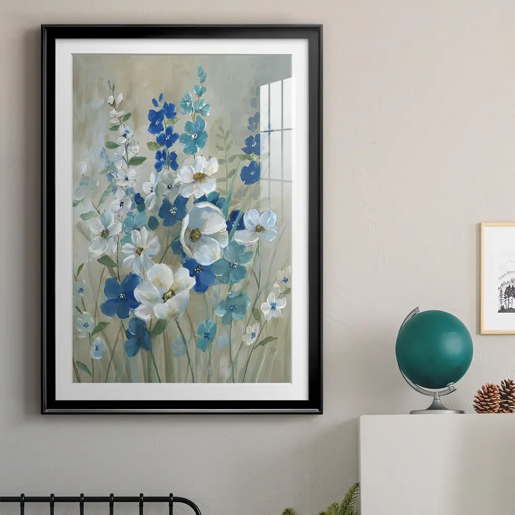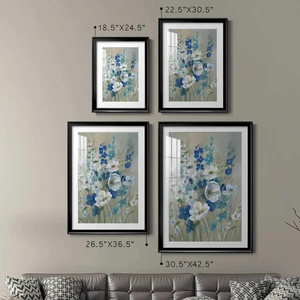 Blue Garden I Premium Framed Print - Ready to Hang A Premium Framed Print created to last. Framed in distressed wood and available in an array of sizes and colors Featuring a beveled a solid wood stretcher bar, each piece comes ready to hand 4 SIZES AVAILABLE 30.5''X42.5'' - Overall Size 26.5'X36.5'' - Overall Size 22.5''x30.5'' - Overall Size 18.5''x24.5'' - Overall Size Each piece is made to order. Each piece comes with hanging hardware. Made in the USA Ready to Hang Giclee Paper Print Acrylic Glass Beveled Matt Board