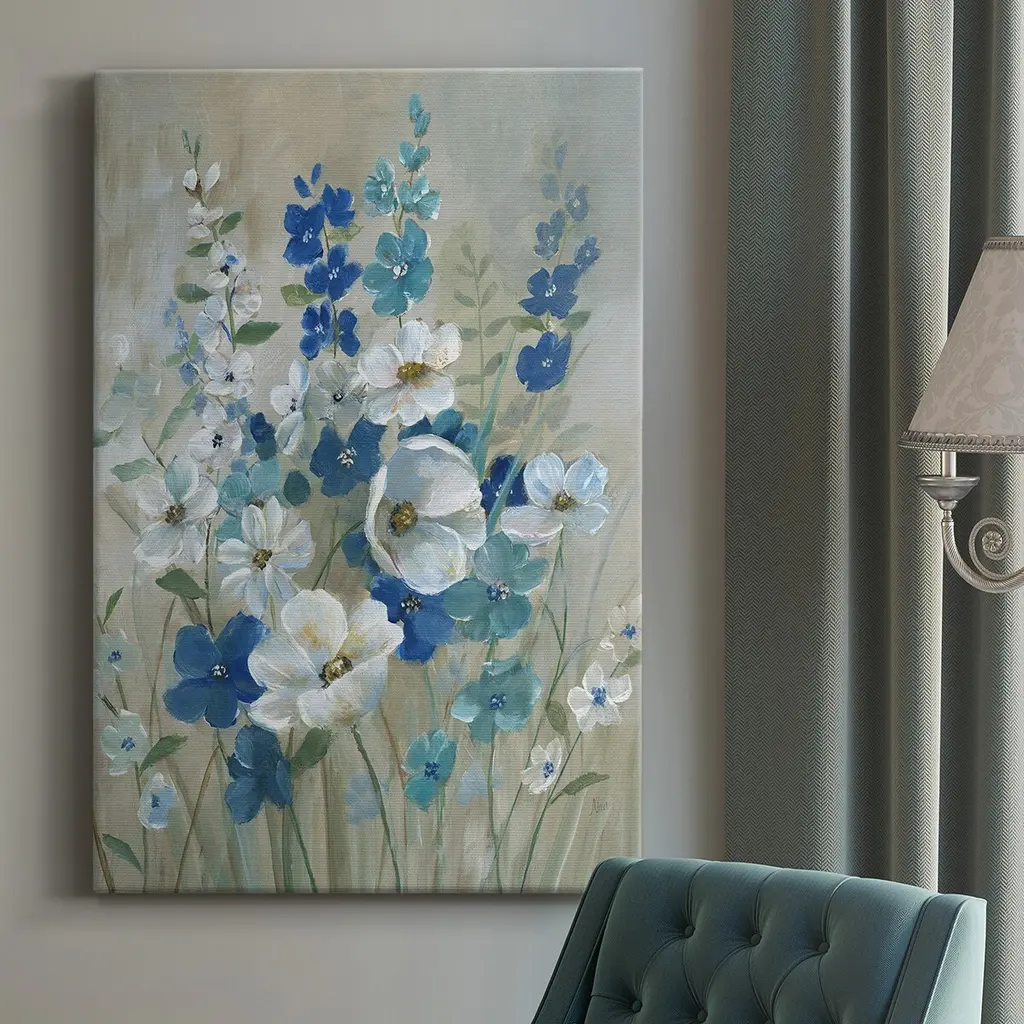 Blue Garden I Premium Gallery Wrapped Canvas - Ready to Hang A premium hand stretched gallery wrapped canvas print created to last. Featuring a beveled a solid wood stretcher bar, each piece comes ready to hand 6 SIZES AVAILABLE 8''X12'' - Overall Size 12''X18'' - Overall Size 18''X27'' - Overall Size 24''x36'' - Overall Size 32''x48'' - Overall Size 40''x60'' - Overall Size Each piece is made to order. Built to Last Each piece comes ready to hang Solid wood stretcher Fade and Water resistant Made domestically