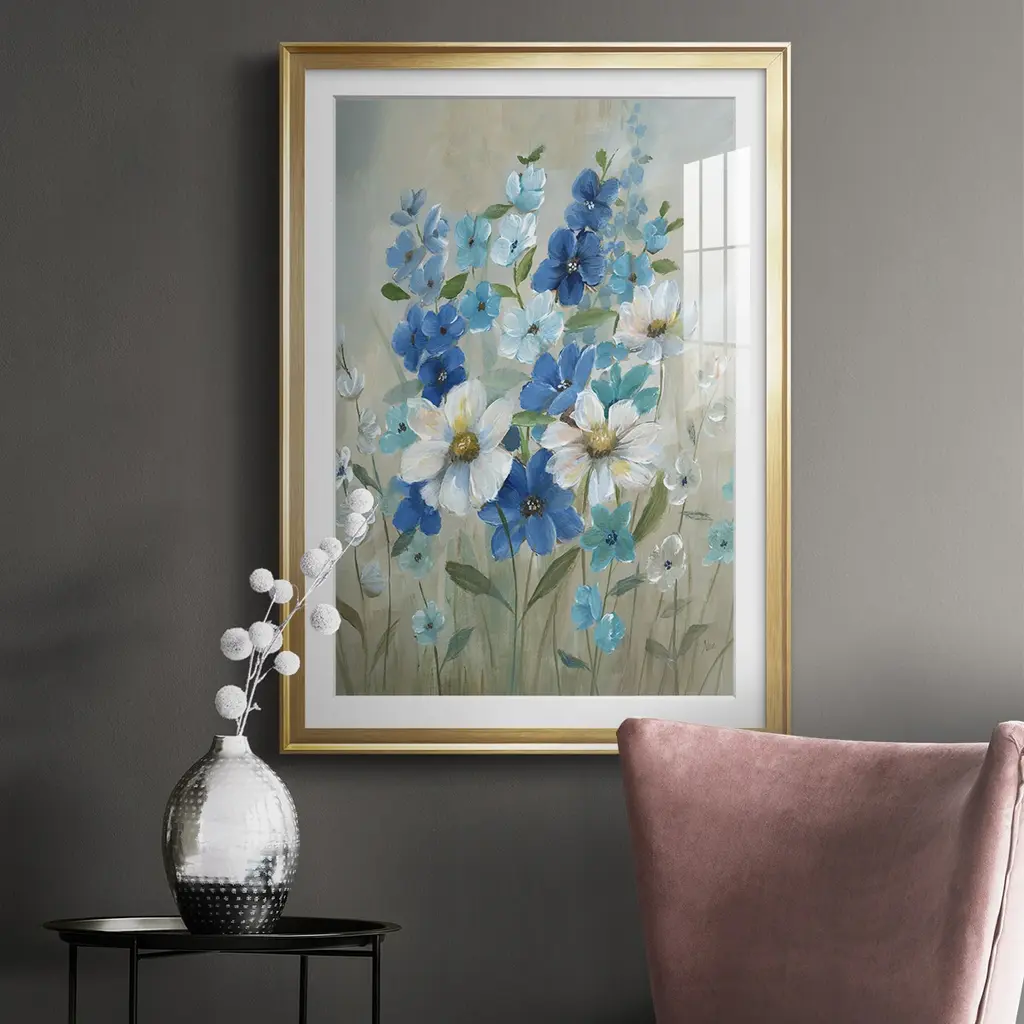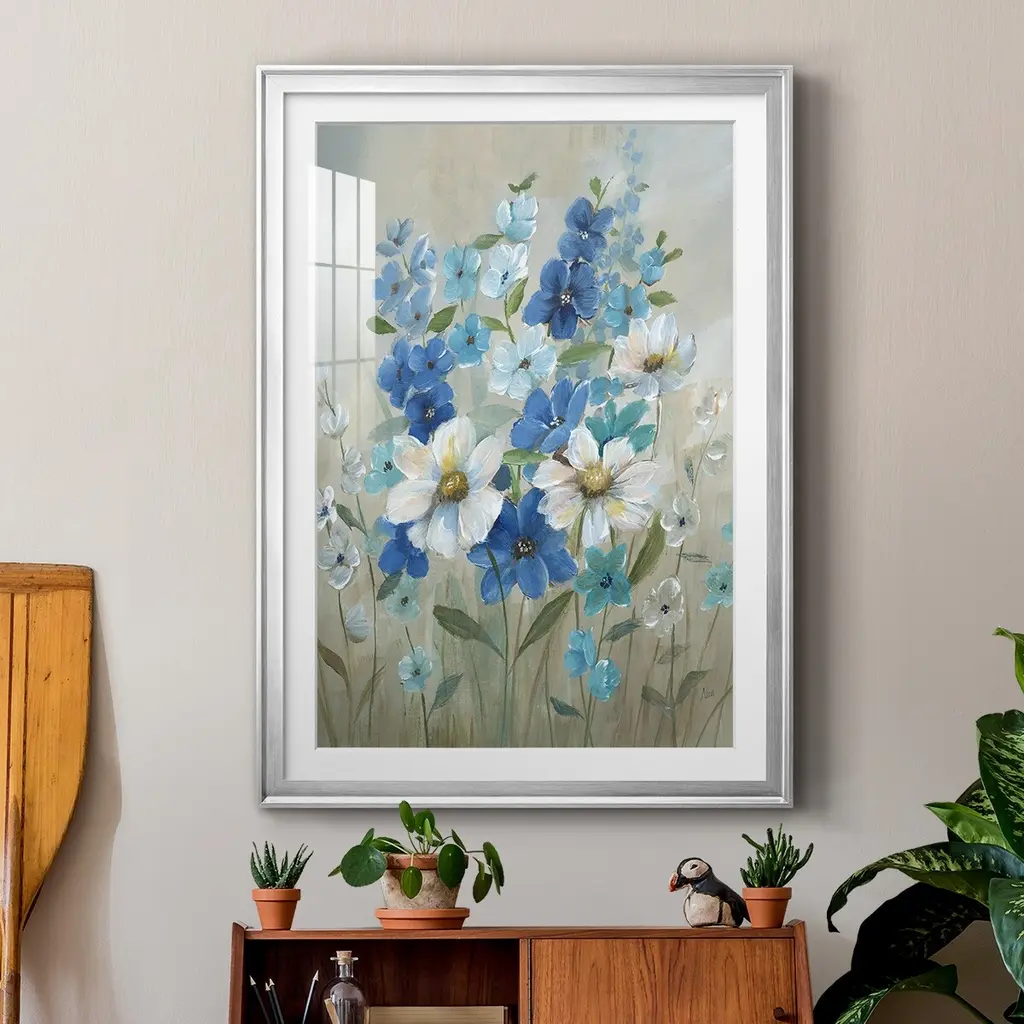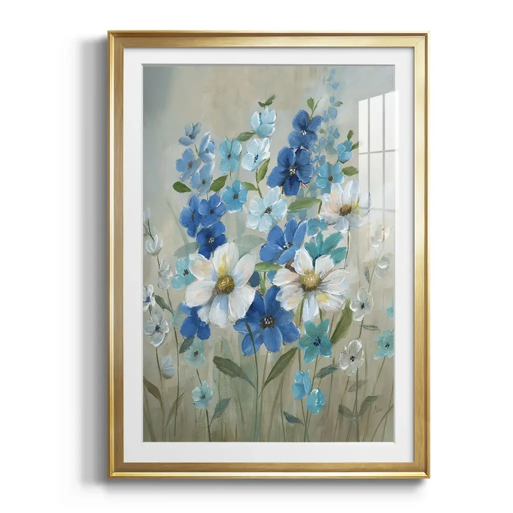 Blue Garden II Premium Framed Print - Ready to Hang A Premium Framed Print created to last. Framed in distressed wood and available in an array of sizes and colors Featuring a beveled a solid wood stretcher bar, each piece comes ready to hand 4 SIZES AVAILABLE 30.5''X42.5'' - Overall Size 26.5'X36.5'' - Overall Size 22.5''x30.5'' - Overall Size 18.5''x24.5'' - Overall Size Each piece is made to order. Each piece comes with hanging hardware. Made in the USA Ready to Hang Giclee Paper Print Acrylic Glass Beveled Matt Board