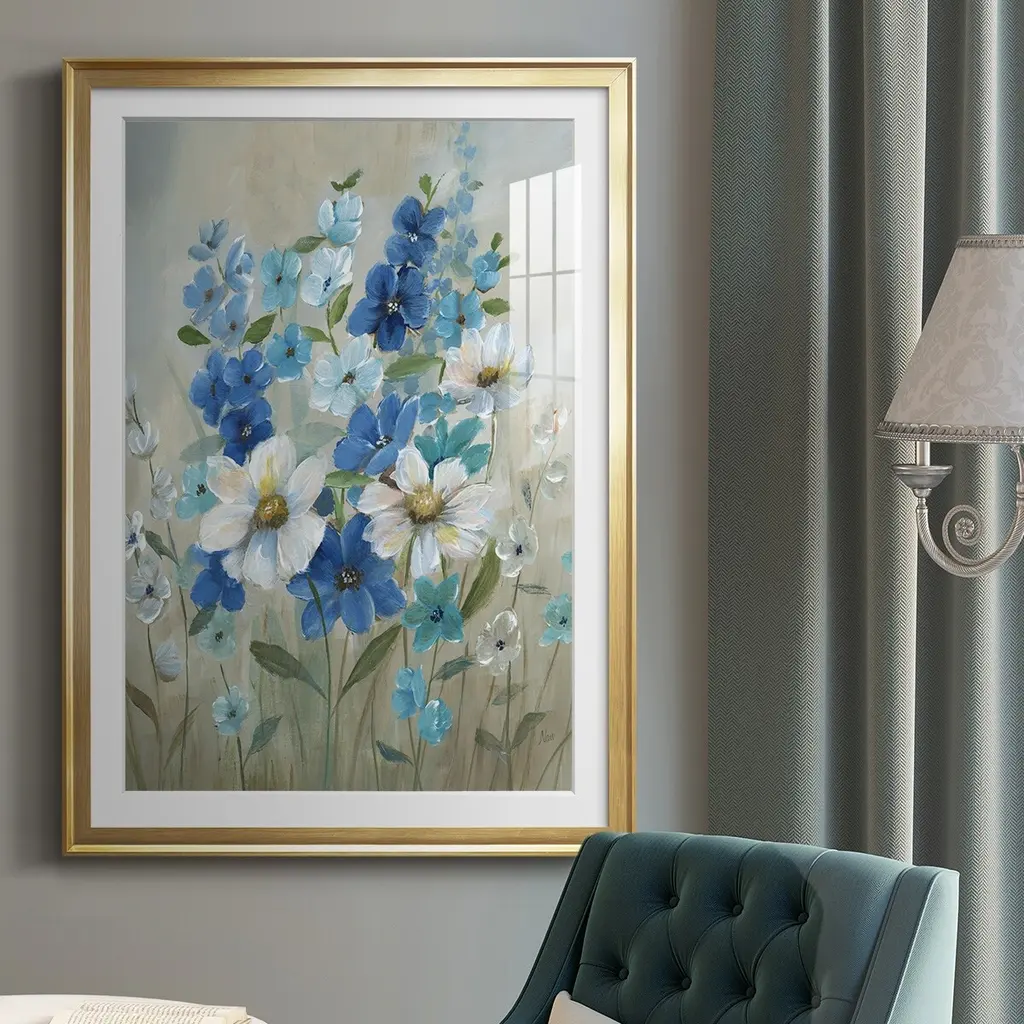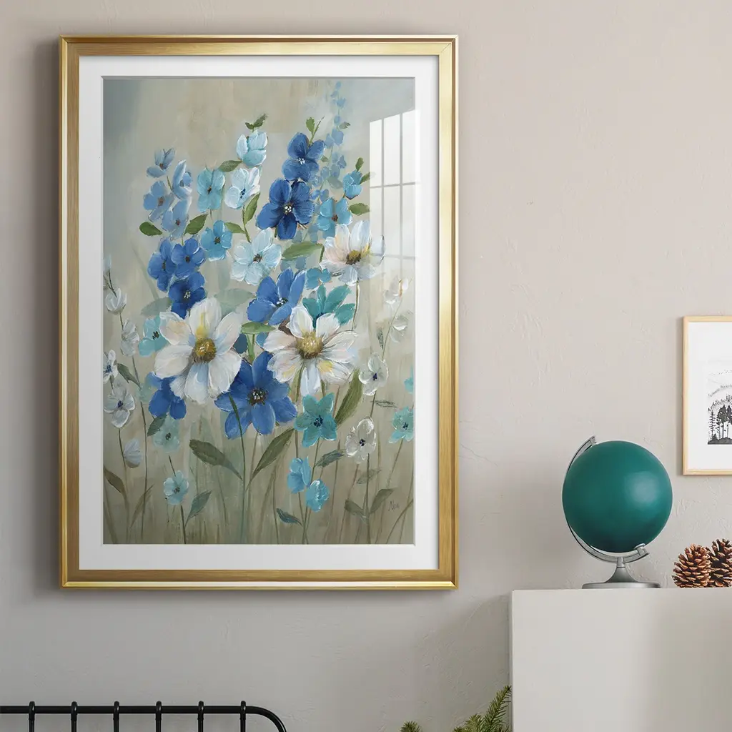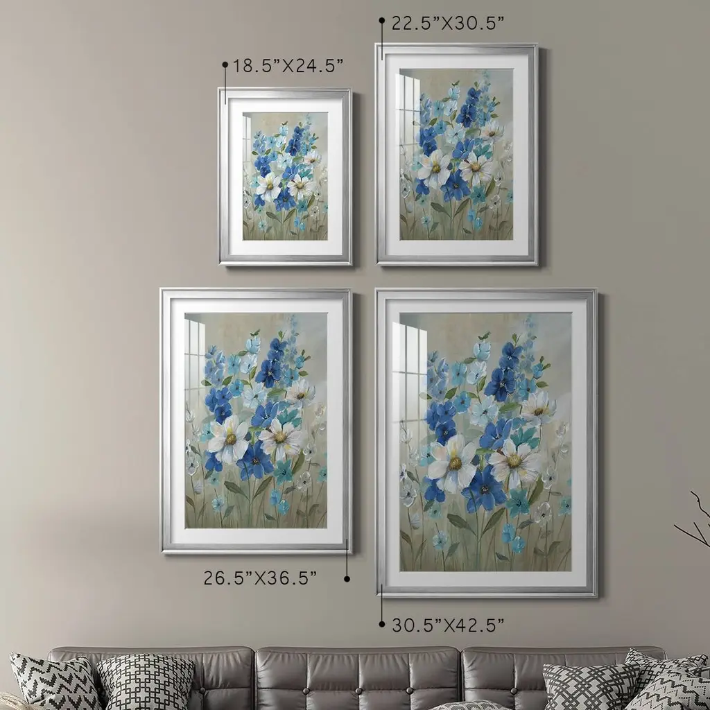 Blue Garden II Premium Framed Print - Ready to Hang A Premium Framed Print created to last. Framed in distressed wood and available in an array of sizes and colors Featuring a beveled a solid wood stretcher bar, each piece comes ready to hand 4 SIZES AVAILABLE 30.5''X42.5'' - Overall Size 26.5'X36.5'' - Overall Size 22.5''x30.5'' - Overall Size 18.5''x24.5'' - Overall Size Each piece is made to order. Each piece comes with hanging hardware. Made in the USA Ready to Hang Giclee Paper Print Acrylic Glass Beveled Matt Board