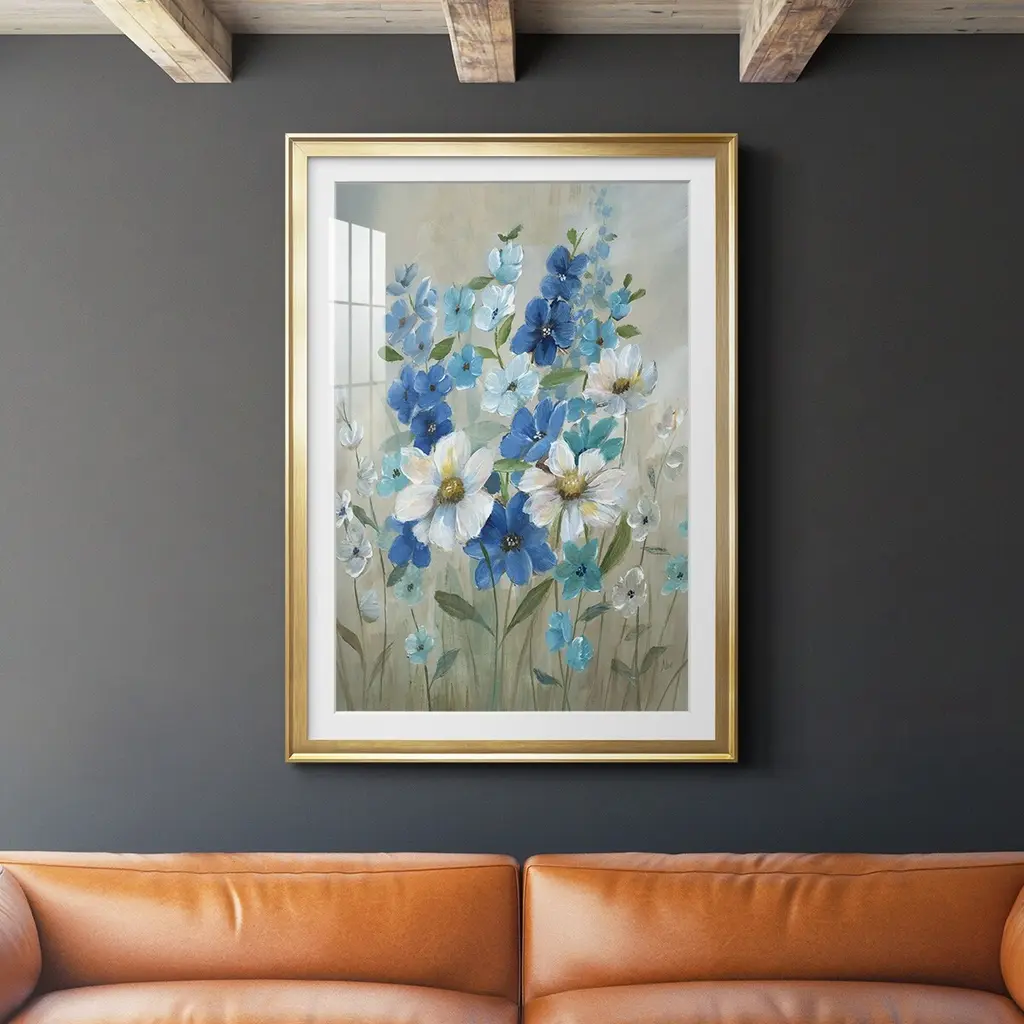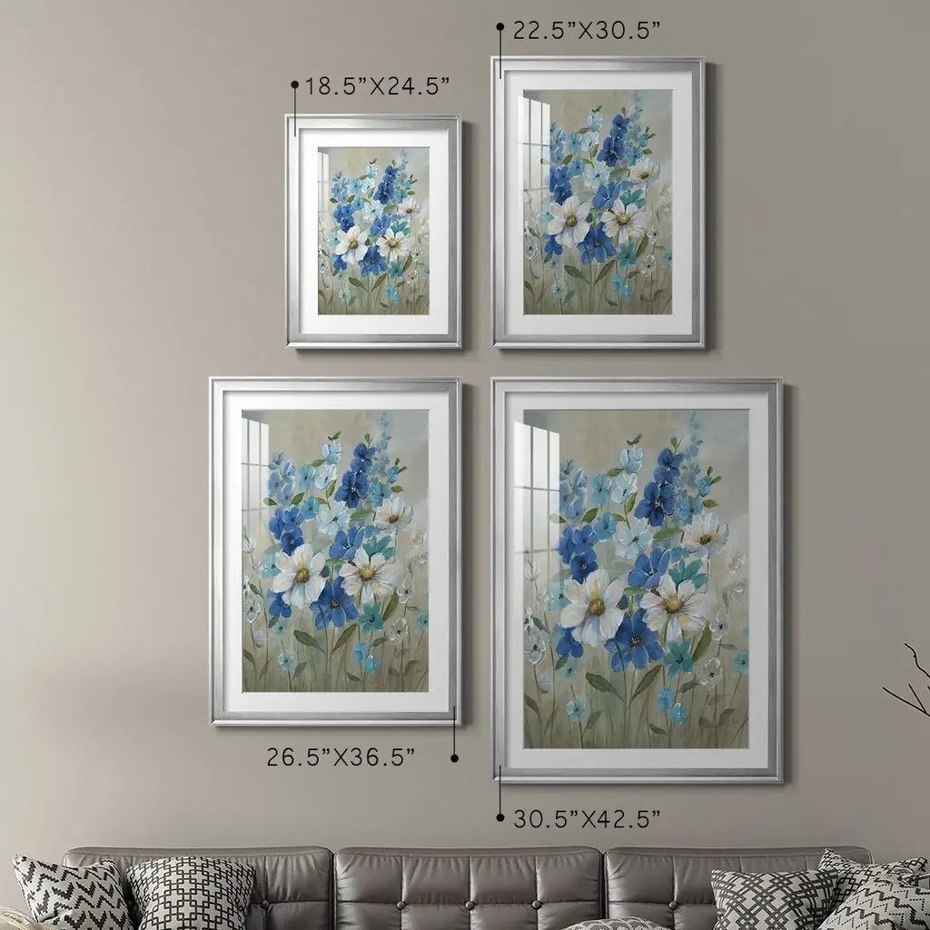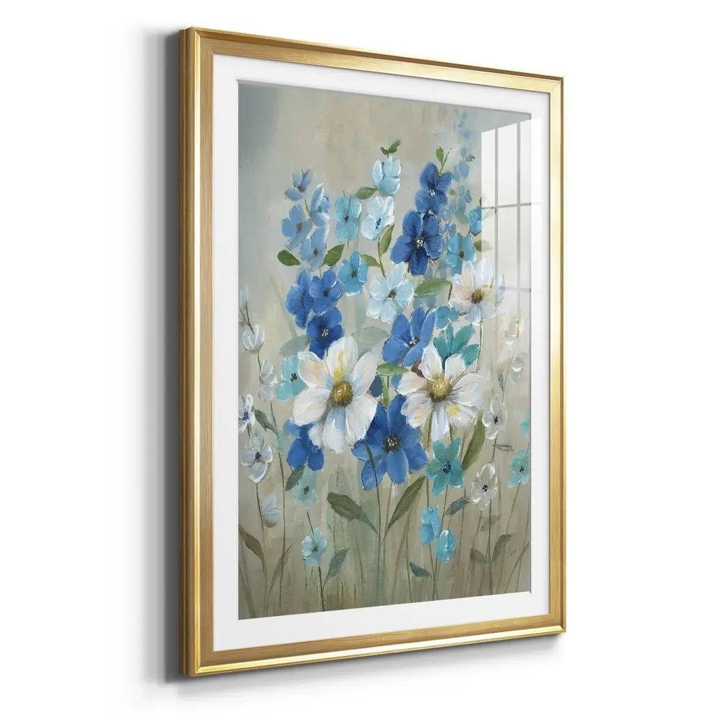 Blue Garden II Premium Framed Print - Ready to Hang A Premium Framed Print created to last. Framed in distressed wood and available in an array of sizes and colors Featuring a beveled a solid wood stretcher bar, each piece comes ready to hand 4 SIZES AVAILABLE 30.5''X42.5'' - Overall Size 26.5'X36.5'' - Overall Size 22.5''x30.5'' - Overall Size 18.5''x24.5'' - Overall Size Each piece is made to order. Each piece comes with hanging hardware. Made in the USA Ready to Hang Giclee Paper Print Acrylic Glass Beveled Matt Board