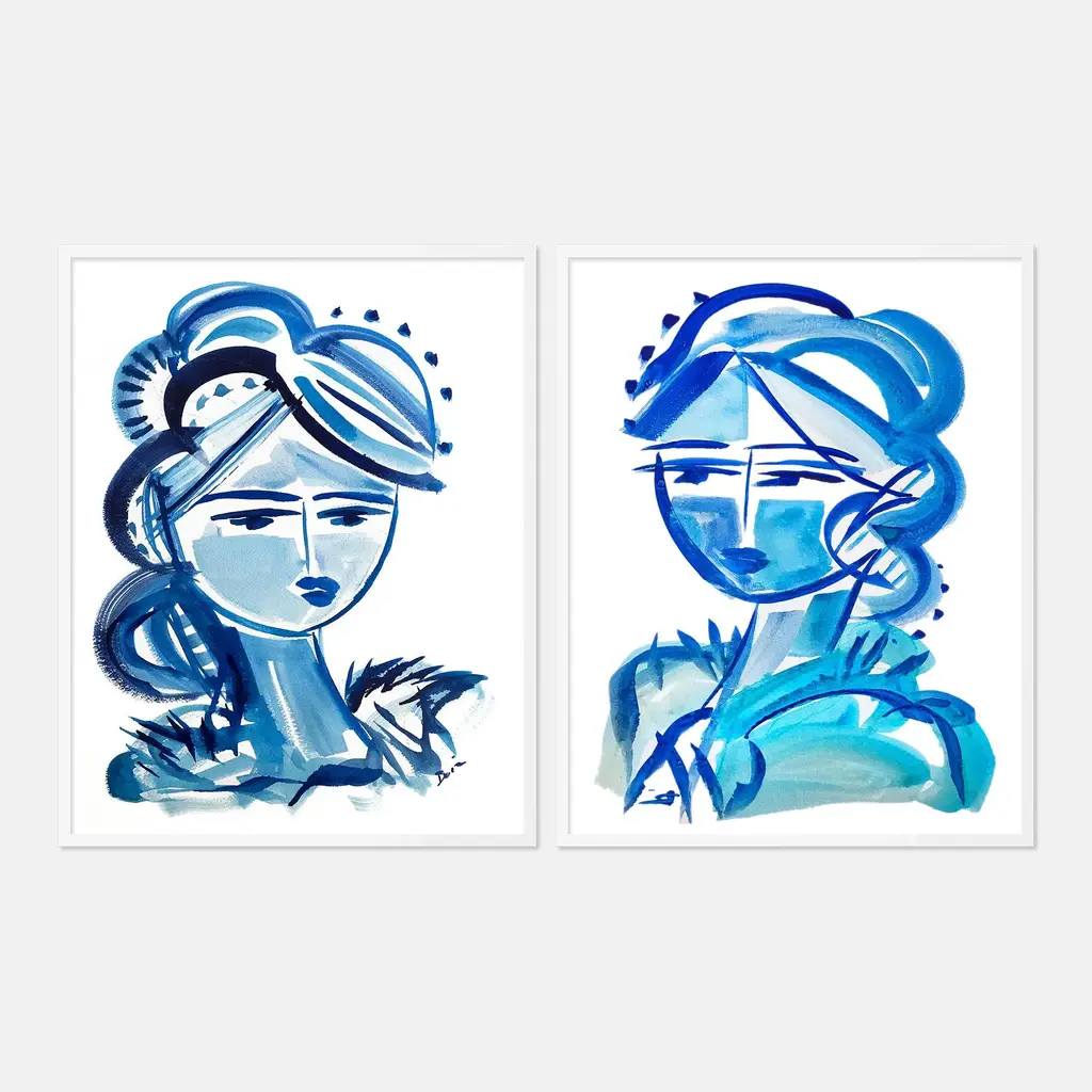 Blue Girls Diptych By Maren Devine In White Frame, Small Art Print