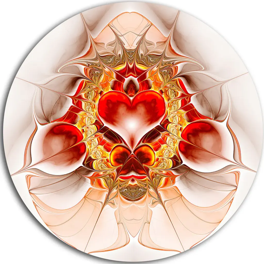 Blue Gold Symmetrical Fractal Heart, Abstract Round Metal Wall Art, 36"