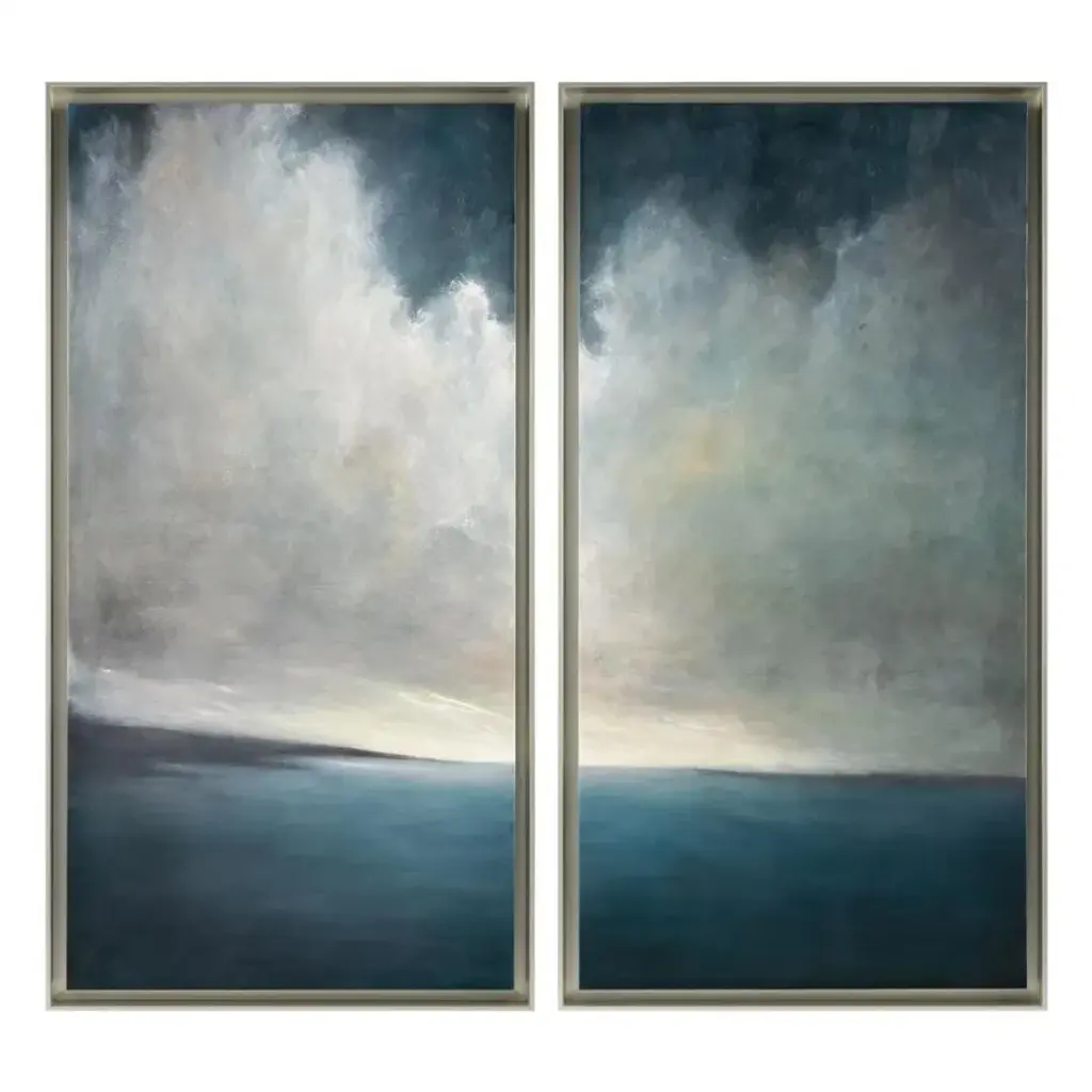 Your ready to hang artwork is printed on canvas then stretched and mounted to a 2-inch thick - hand stained black wood frame. Arrives at your door complete with an easy to use self-leveling hangking kit.
