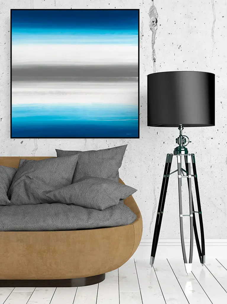 Your ready to hang artwork is printed on canvas then stretched and mounted to a 2-inch thick - hand stained black wood frame. Arrives at your door complete with an easy to use self-leveling hangking kit.