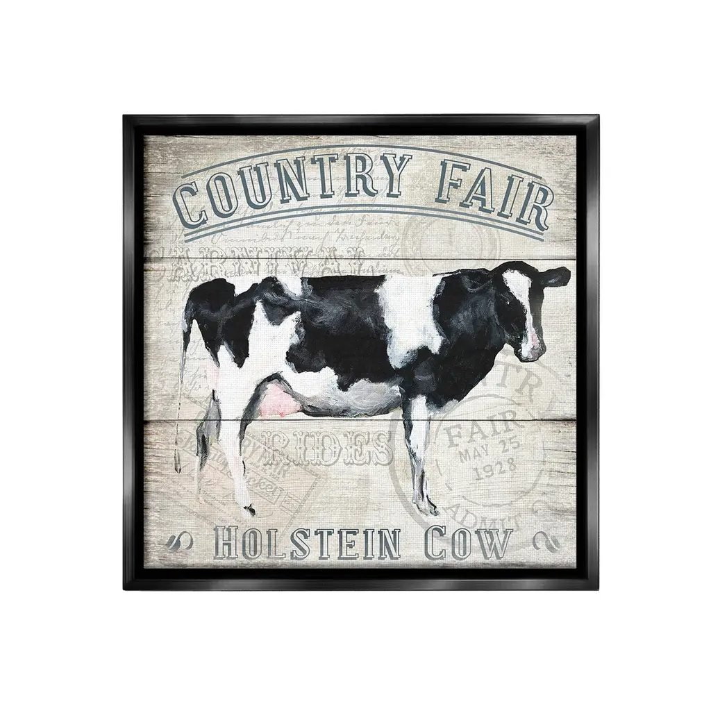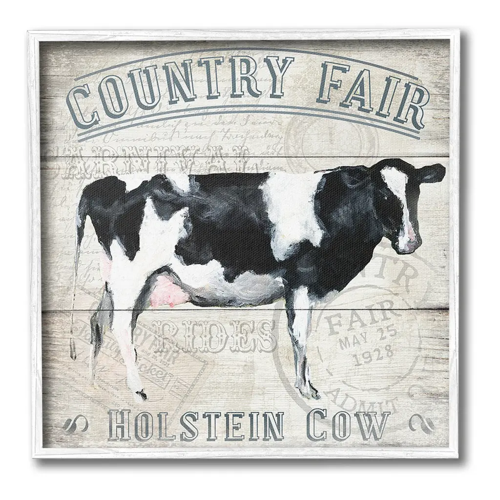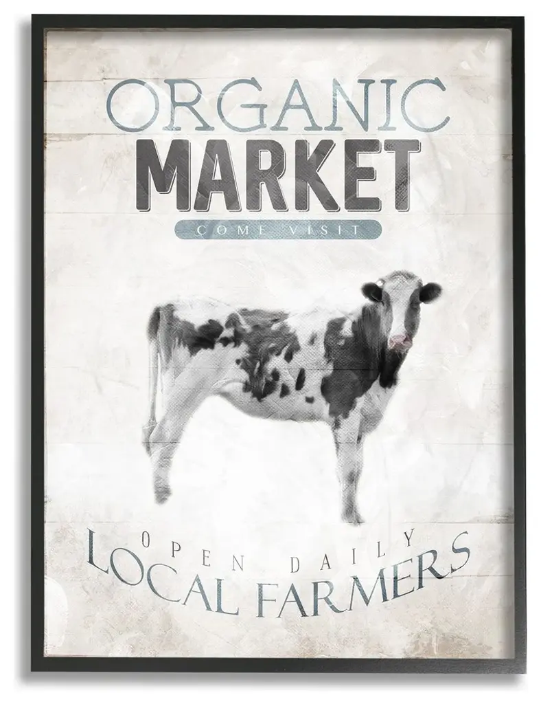 Blue Gray & White Organic Market Local Farmers Cow Framed Giclee Art, 16"x20"