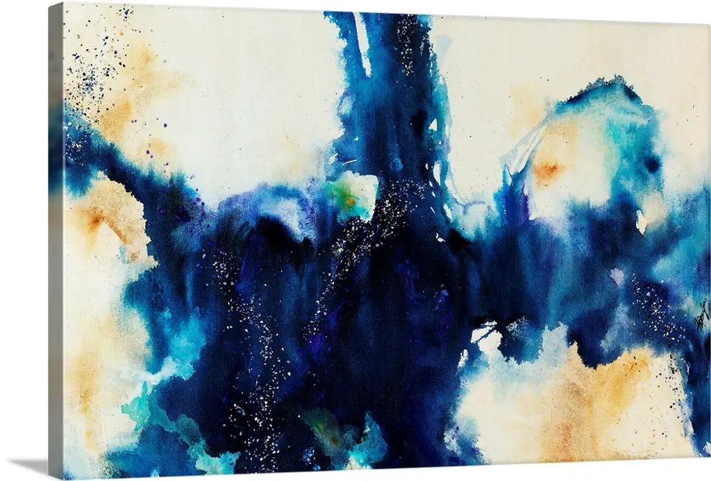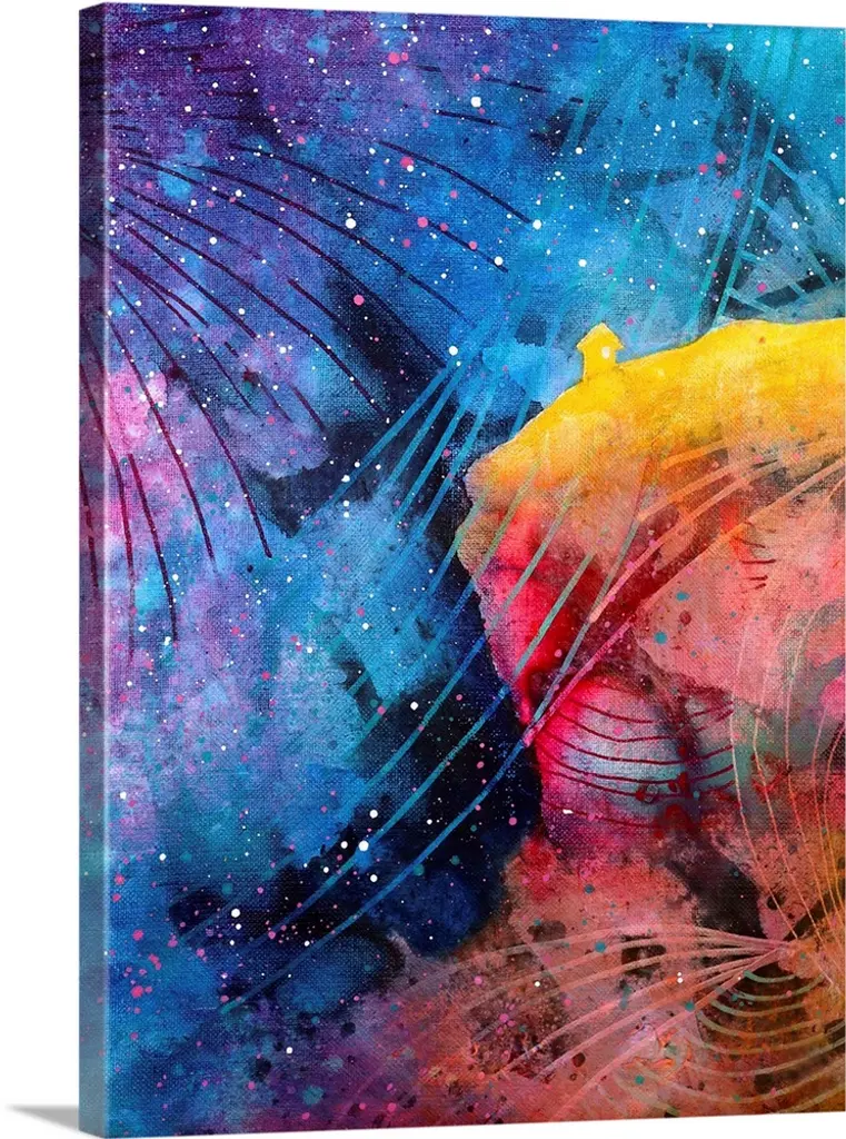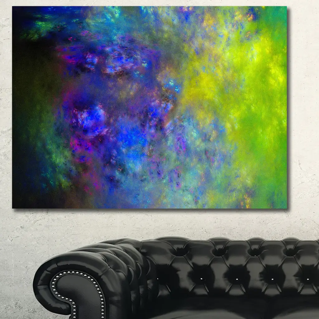 Blue Green Starry Fractal Sky, Oversized Abstract Canvas Art Print, 60x40