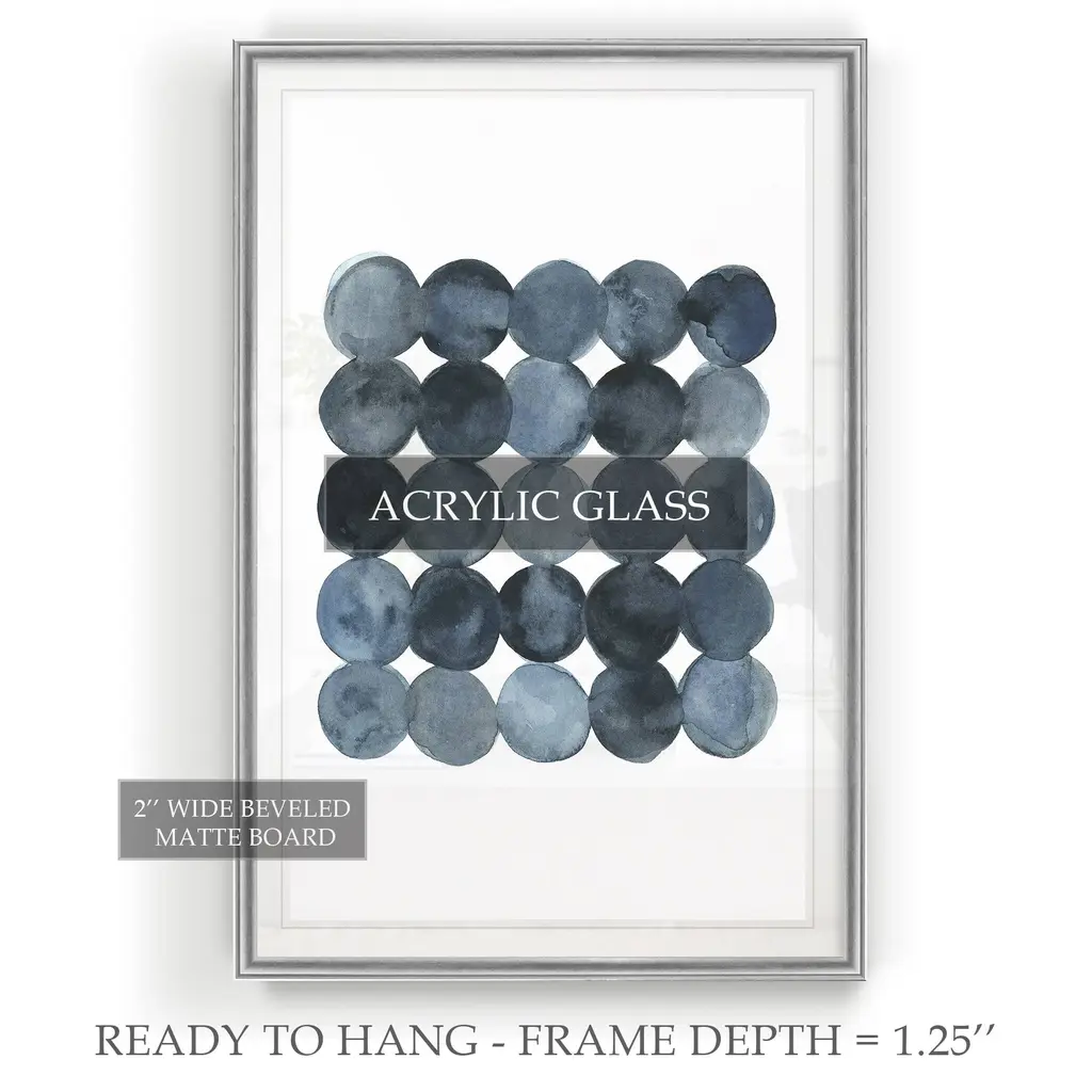 Blue Grey Density II -Custom Framed Print A premium custom framed giclee print Featuring a beveled a matt , acrylic glass, and a high quality giclee print 4 SIZES AVAILABLE 18''x24''- Overall Size 22''x30'' - Overall Size 26''x36''' - Overall Size 30''x42''' - Overall Size Each piece is made to order. Built to Last Each piece comes ready to hang Fade and Water resistant Made domestically