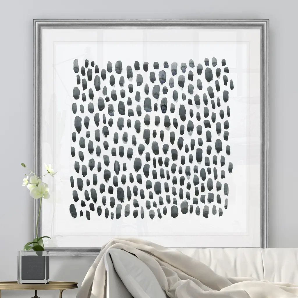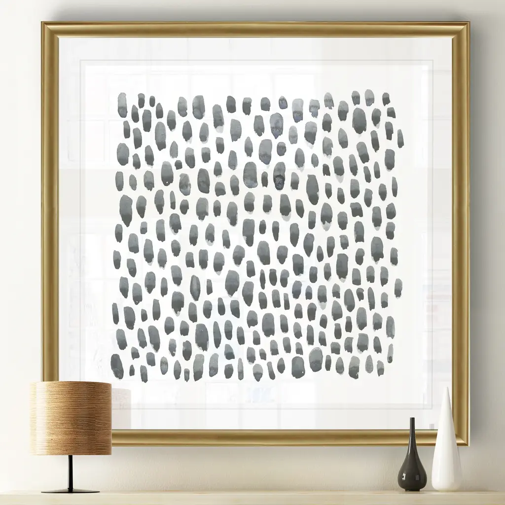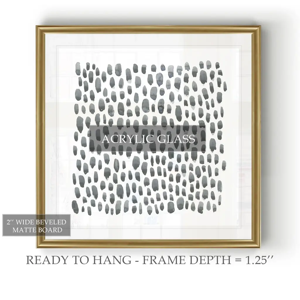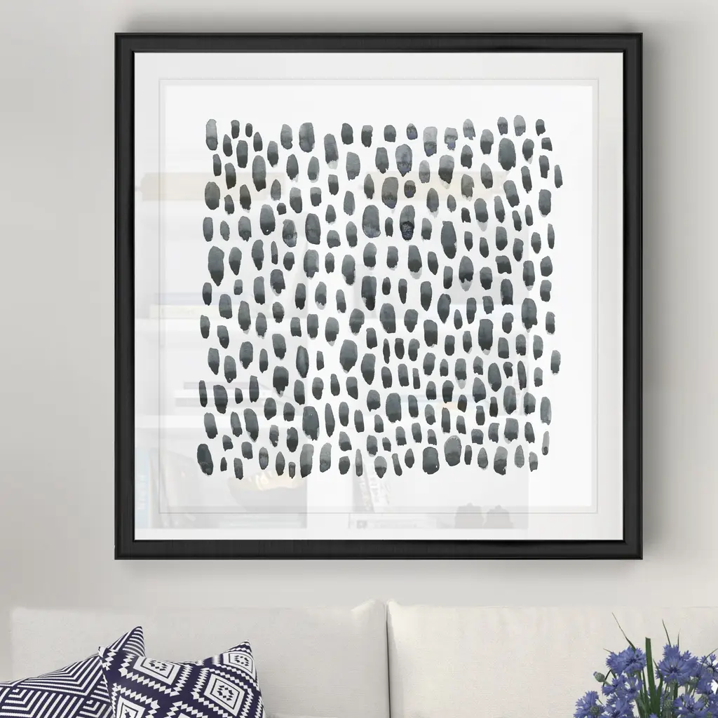 Blue Grey Tessera II -Black Framed Print A premium Black Framed giclee print Featuring a beveled a matt , acrylic glass, and a high quality giclee print 5 SIZES AVAILABLE 34''x34''- Overall Size 30''x30'' - Overall Size 26''x26''' - Overall Size 22''x22''' - Overall Size 18''x18''' - Overall Size Each piece is made to order. Built to Last Each piece comes ready to hang Fade and Water resistant Made domestically
