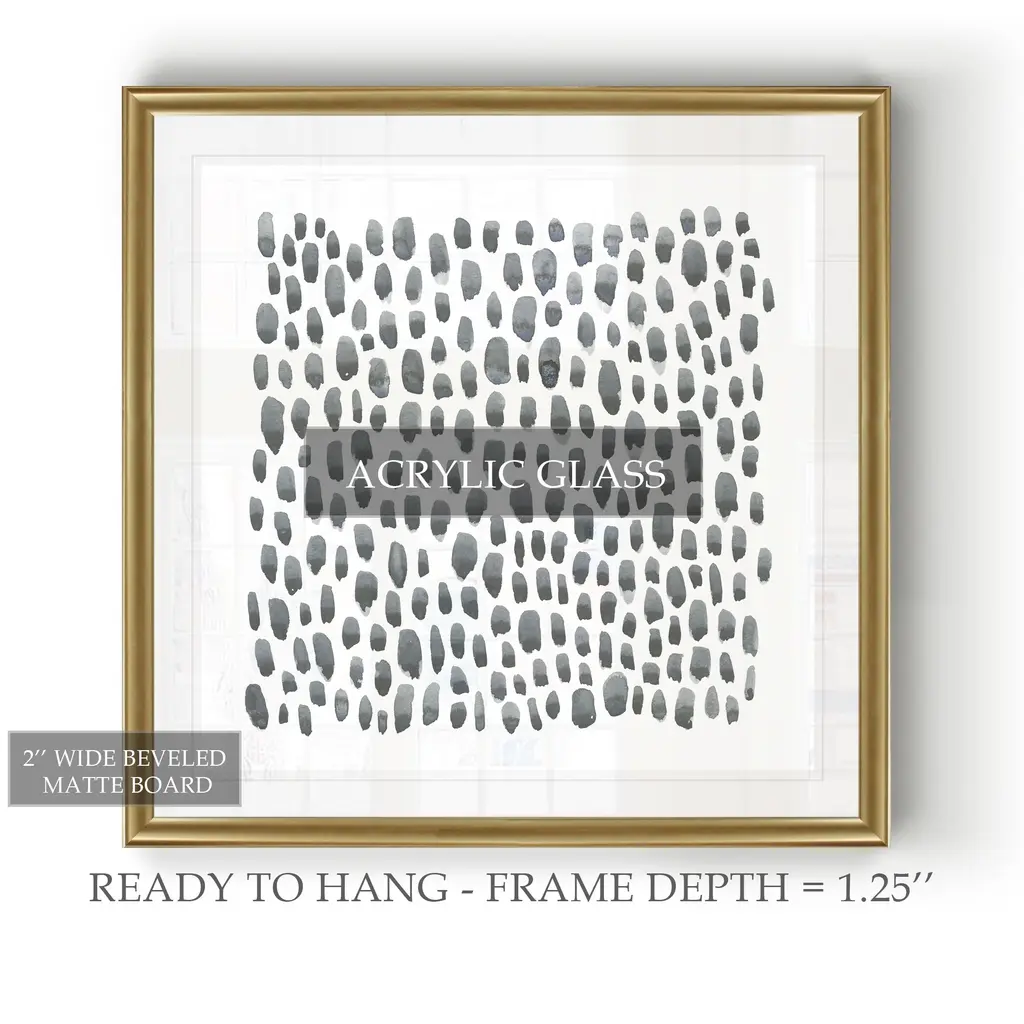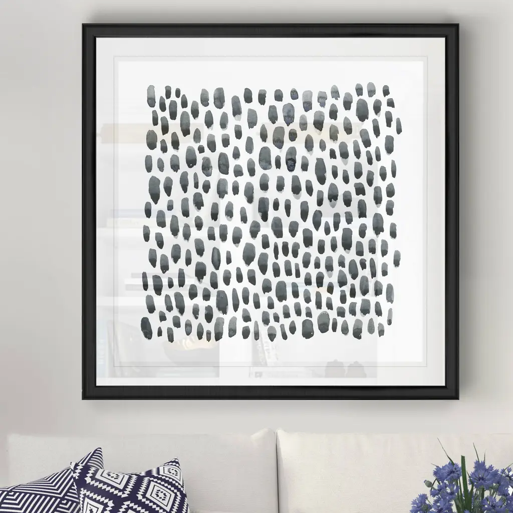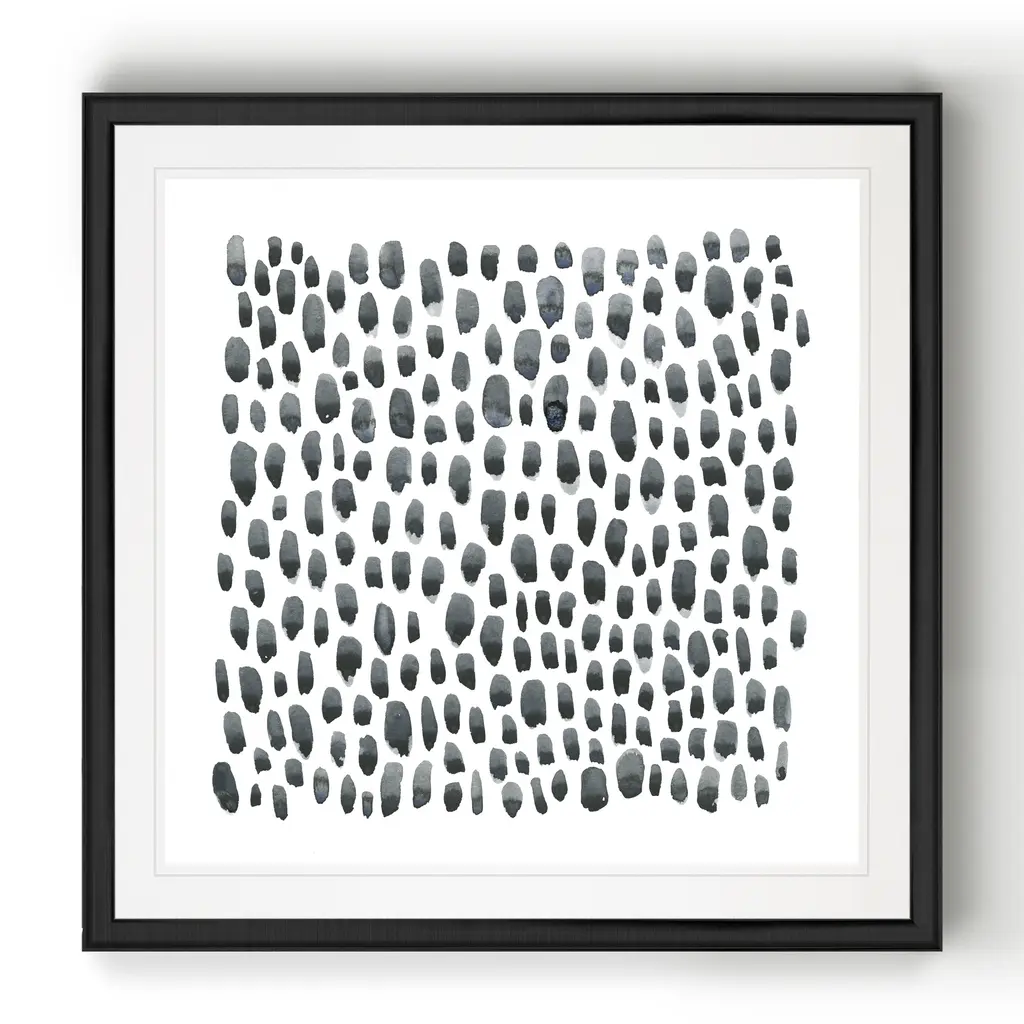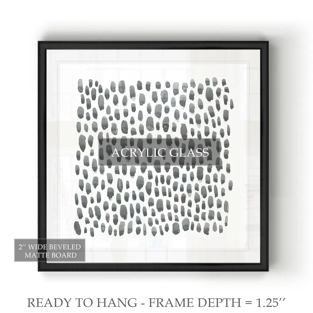 Blue Grey Tessera II -Black Framed Print A premium Black Framed giclee print Featuring a beveled a matt , acrylic glass, and a high quality giclee print 5 SIZES AVAILABLE 34''x34''- Overall Size 30''x30'' - Overall Size 26''x26''' - Overall Size 22''x22''' - Overall Size 18''x18''' - Overall Size Each piece is made to order. Built to Last Each piece comes ready to hang Fade and Water resistant Made domestically