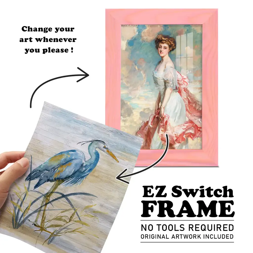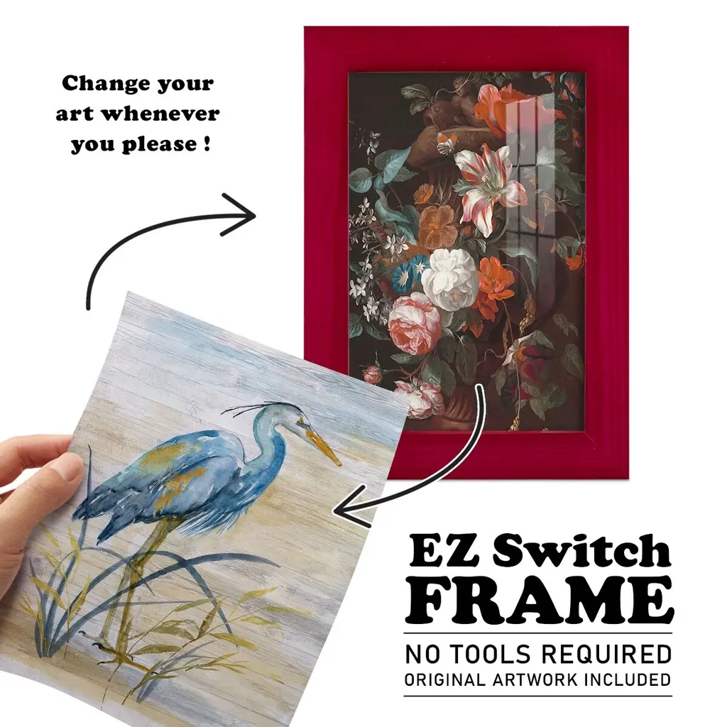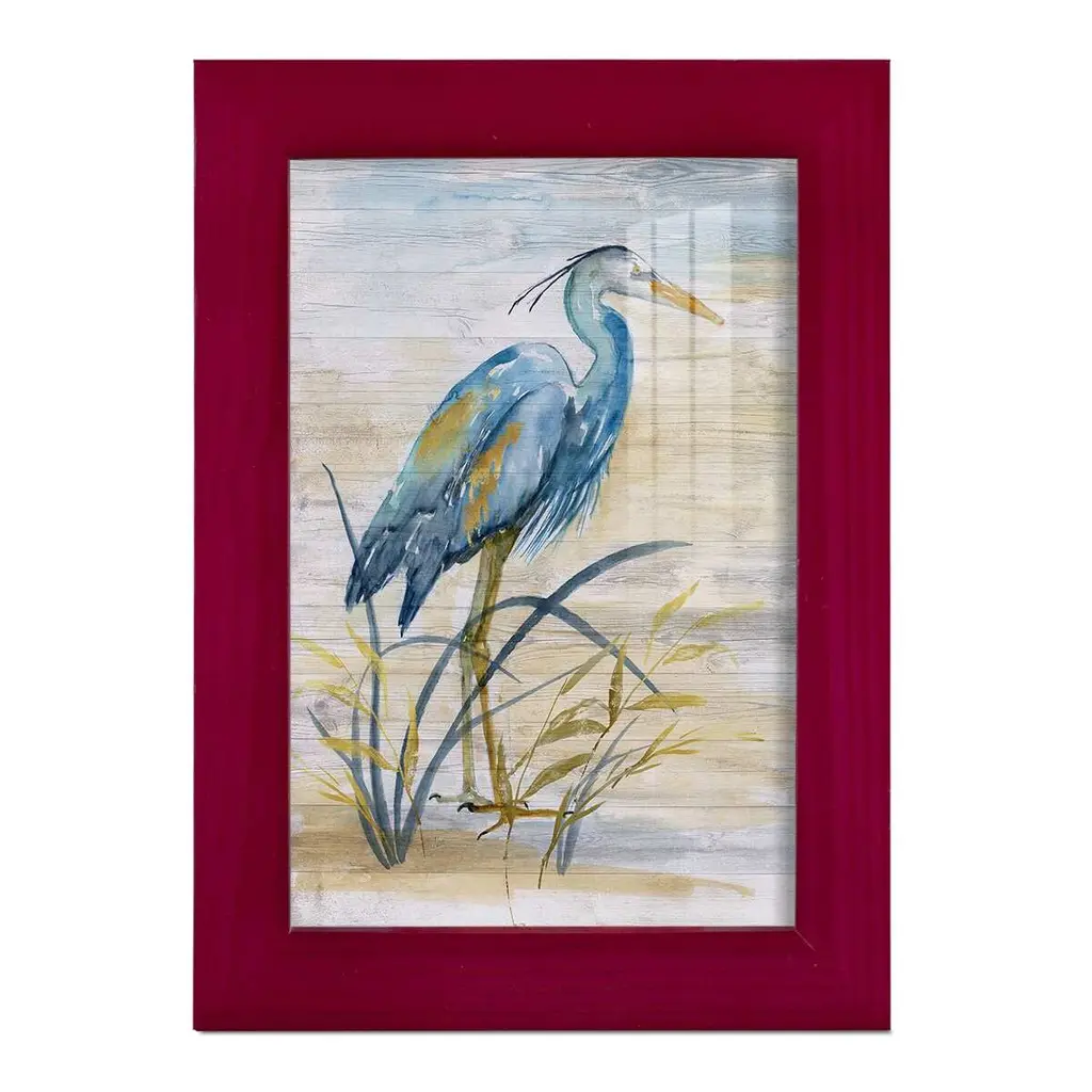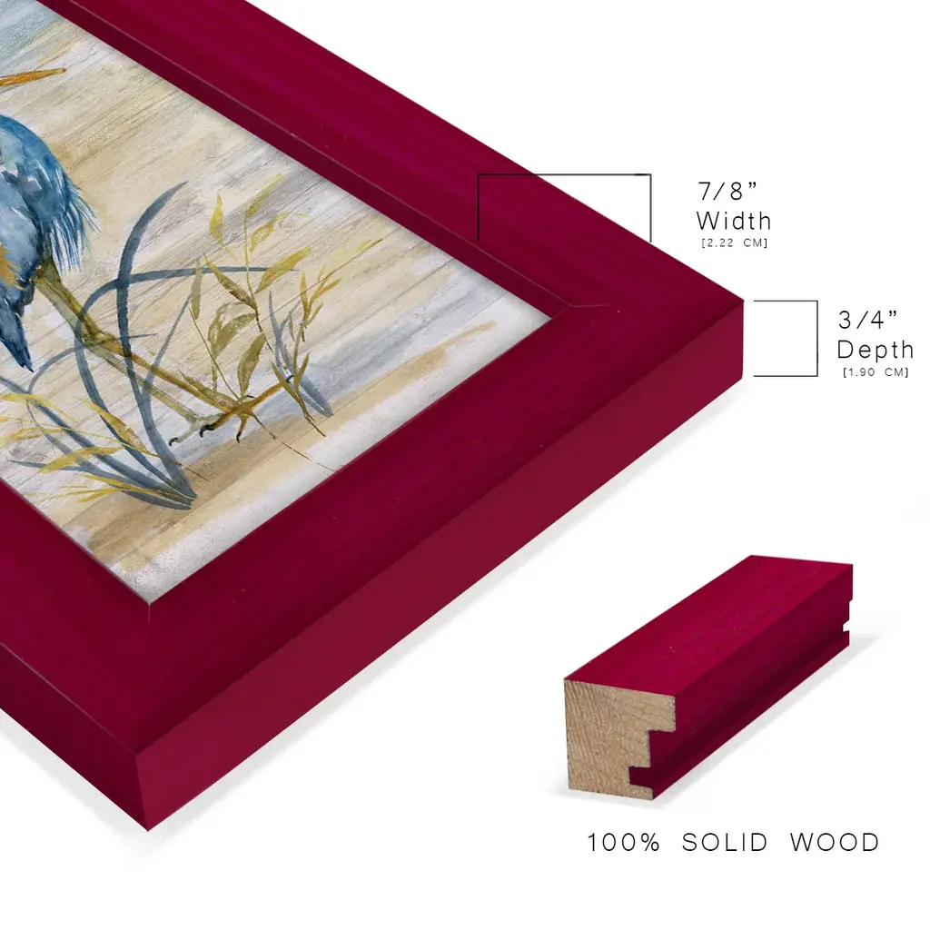 Blue Heron I -EZ SWITCH Framed Print w/glass-Cherry Red A delightful, framed print. Featuring a solid wood frame with real wood glass. This premium print is giclee quality. In addition, every frame features a removable back and table top stand. This allows you to change your art in the future or to just stand the art on a table for a new look. We are sure you'll enjoy our new series of EZ SWITCH Framed Art. Solid Wood Frame Real Glass Removable / Replaceable Art Built in Tabletop Stand Sizes range from 4x6 up to 12x15 - buy just one or pair them up as sets as you see fit.