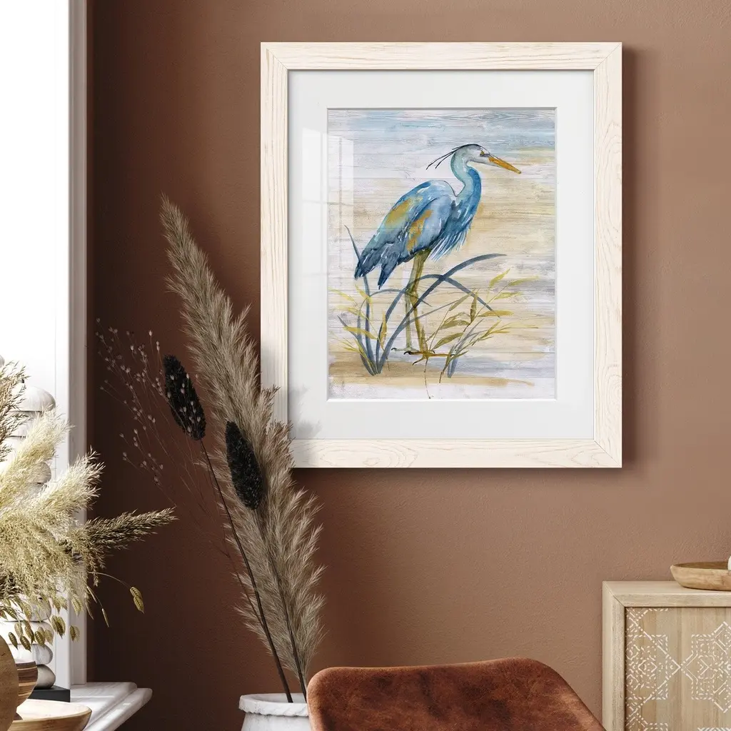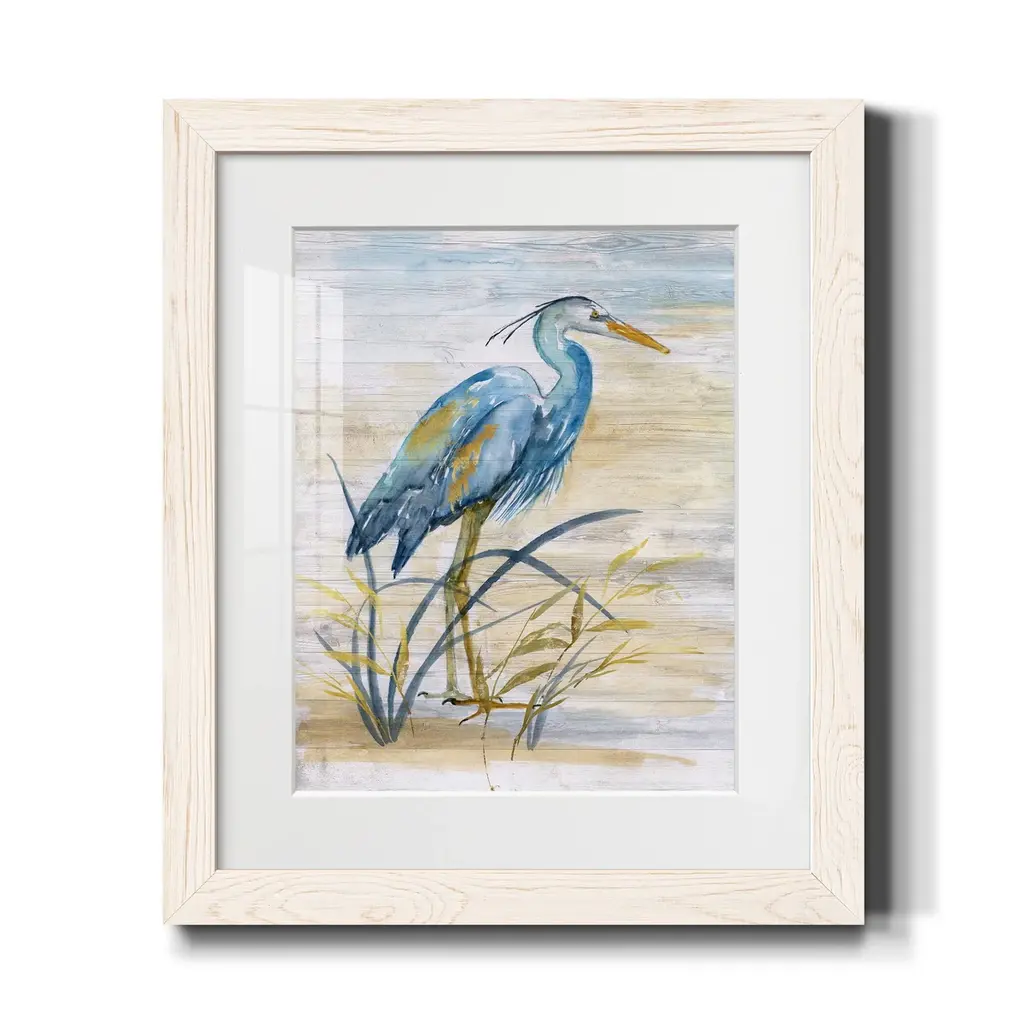 Blue Heron I-Premium Framed Print - Ready to Hang Framed in distressed wood and available in an array of sizes and colors Each piece is joined and assembled by hand and comes ready to hang 2 INCH BEVELED MATTE BOARD PLEXIGLASS COVERING READY TO HANG MADE IN THE USA SOLID WOOD FRAME MADE IN USA FADE RESISTANT GICLEE PRINTING on Canvas or Paper