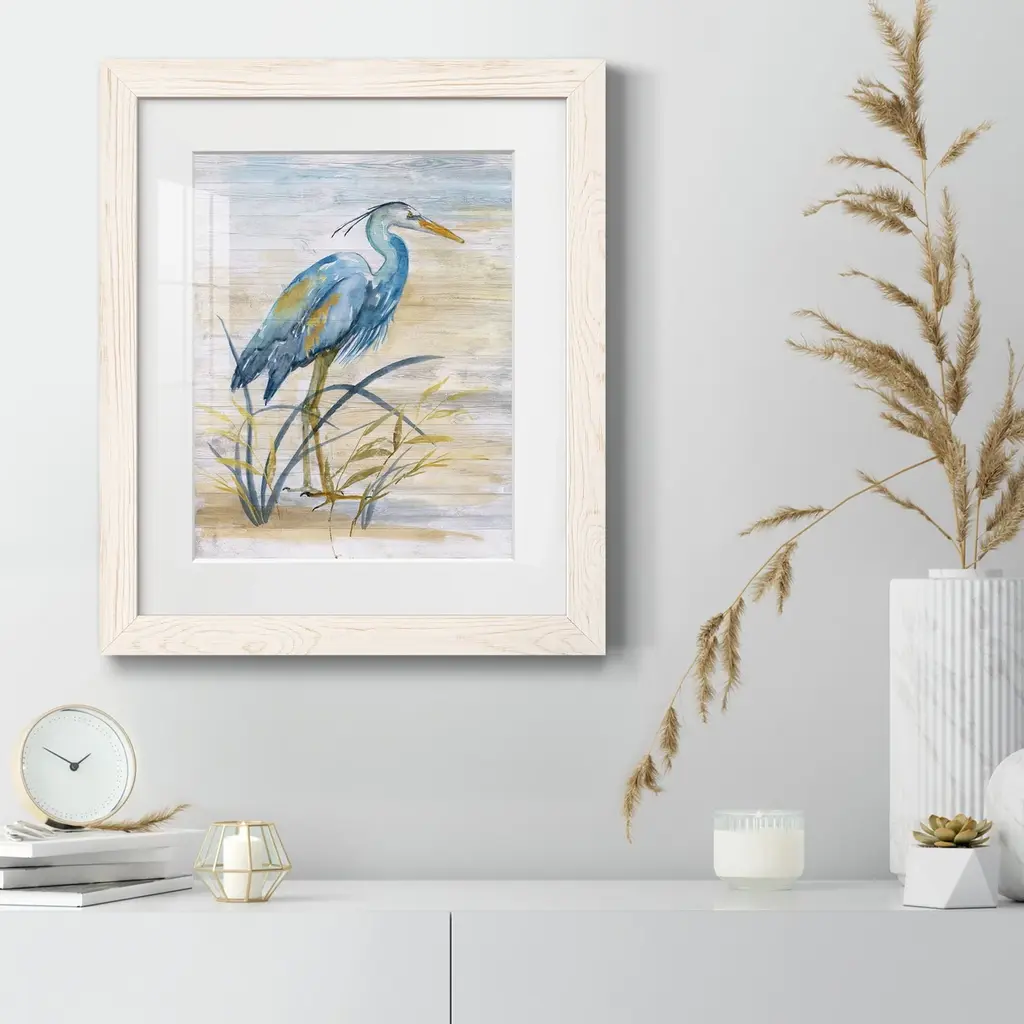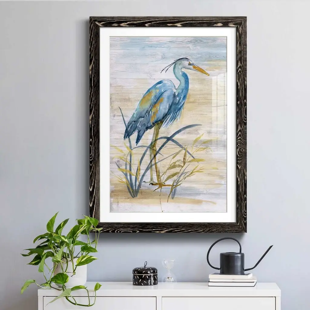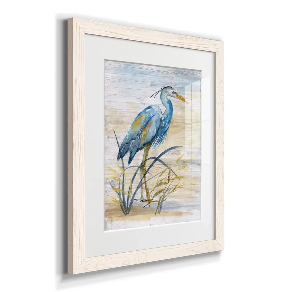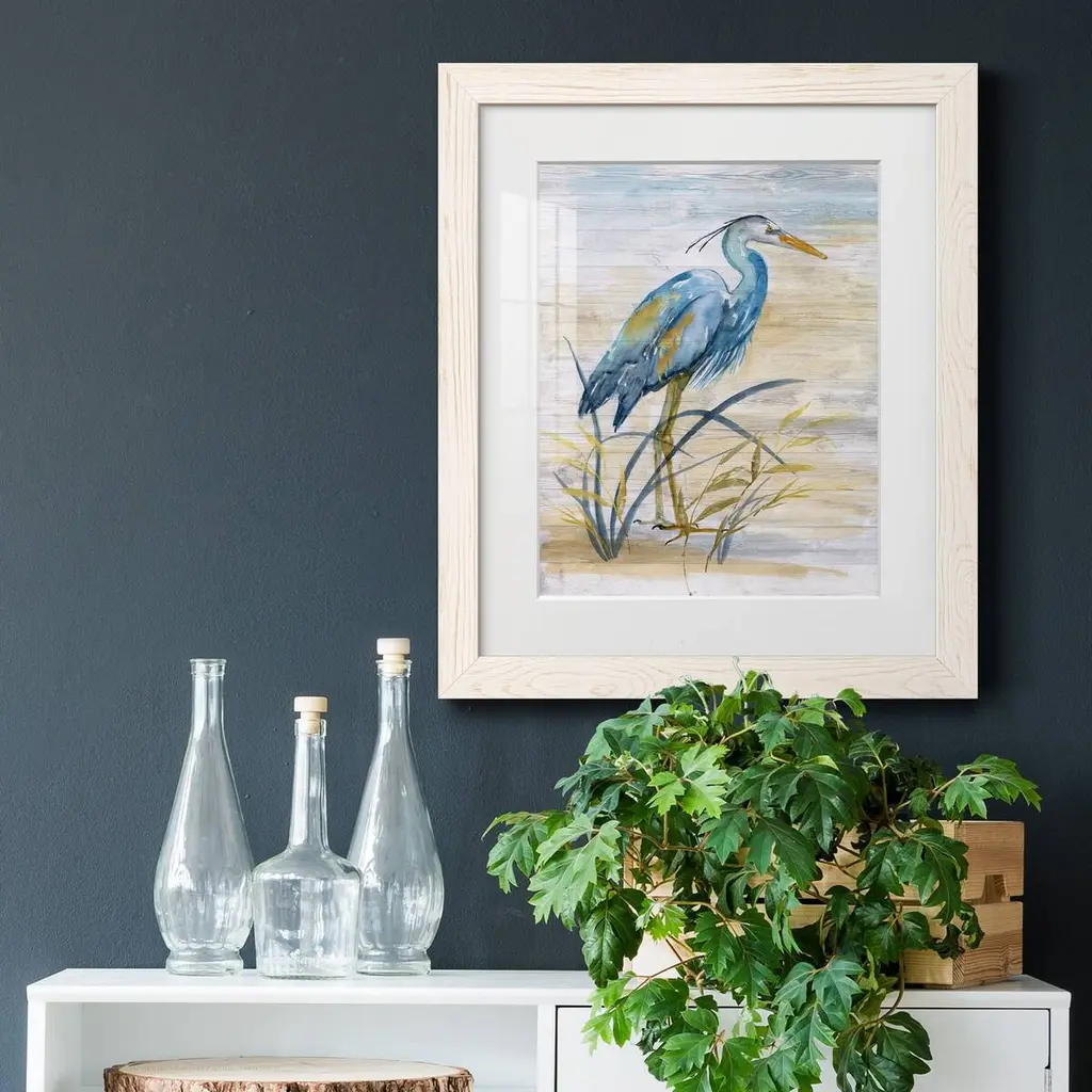 Blue Heron I-Premium Framed Print - Ready to Hang Framed in distressed wood and available in an array of sizes and colors Each piece is joined and assembled by hand and comes ready to hang 2 INCH BEVELED MATTE BOARD PLEXIGLASS COVERING READY TO HANG MADE IN THE USA SOLID WOOD FRAME MADE IN USA FADE RESISTANT GICLEE PRINTING on Canvas or Paper