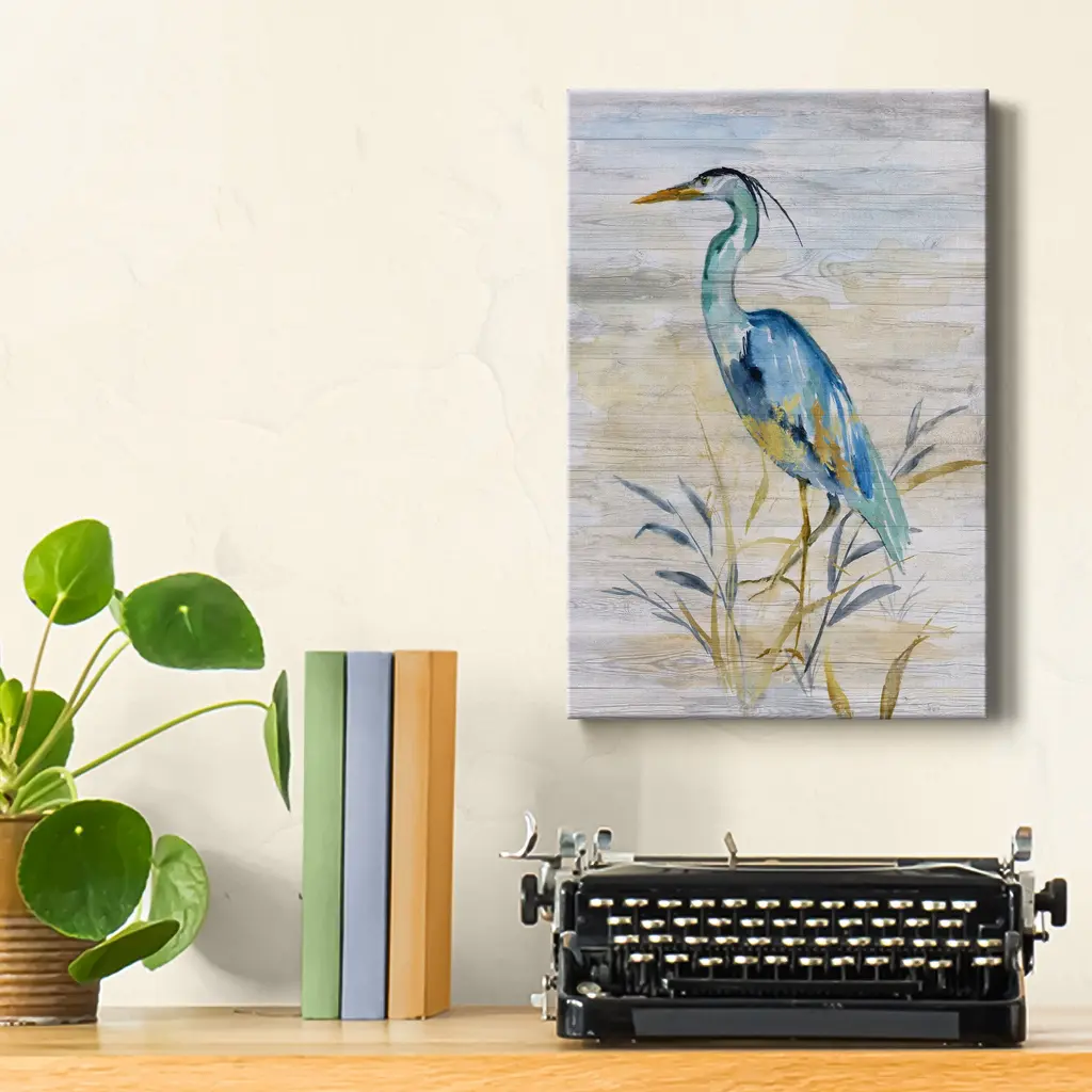 Blue Heron II Premium Gallery Wrapped Canvas - Ready to Hang A premium hand stretched gallery wrapped canvas print created to last. Featuring a beveled a solid wood stretcher bar, each piece comes ready to hand 5 SIZES AVAILABLE 8''X12'' - Overall Size 16'X20'' - Overall Size 24''x32'' - Overall Size 30''x40'' - Overall Size 36''x48'' - Overall Size Each piece is made to order. Built to Last Each piece comes ready to hang Solid wood stretcher Fade and Water resistant Made domestically