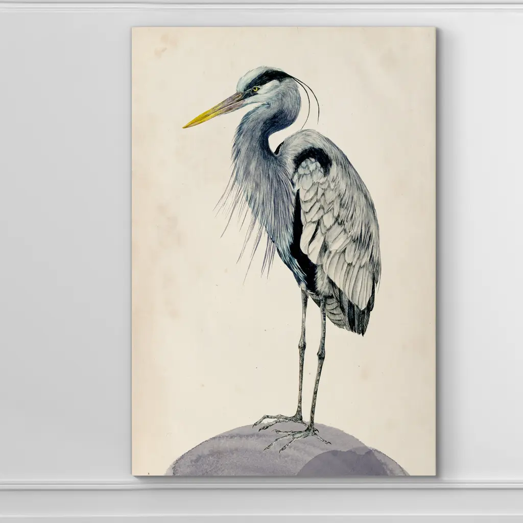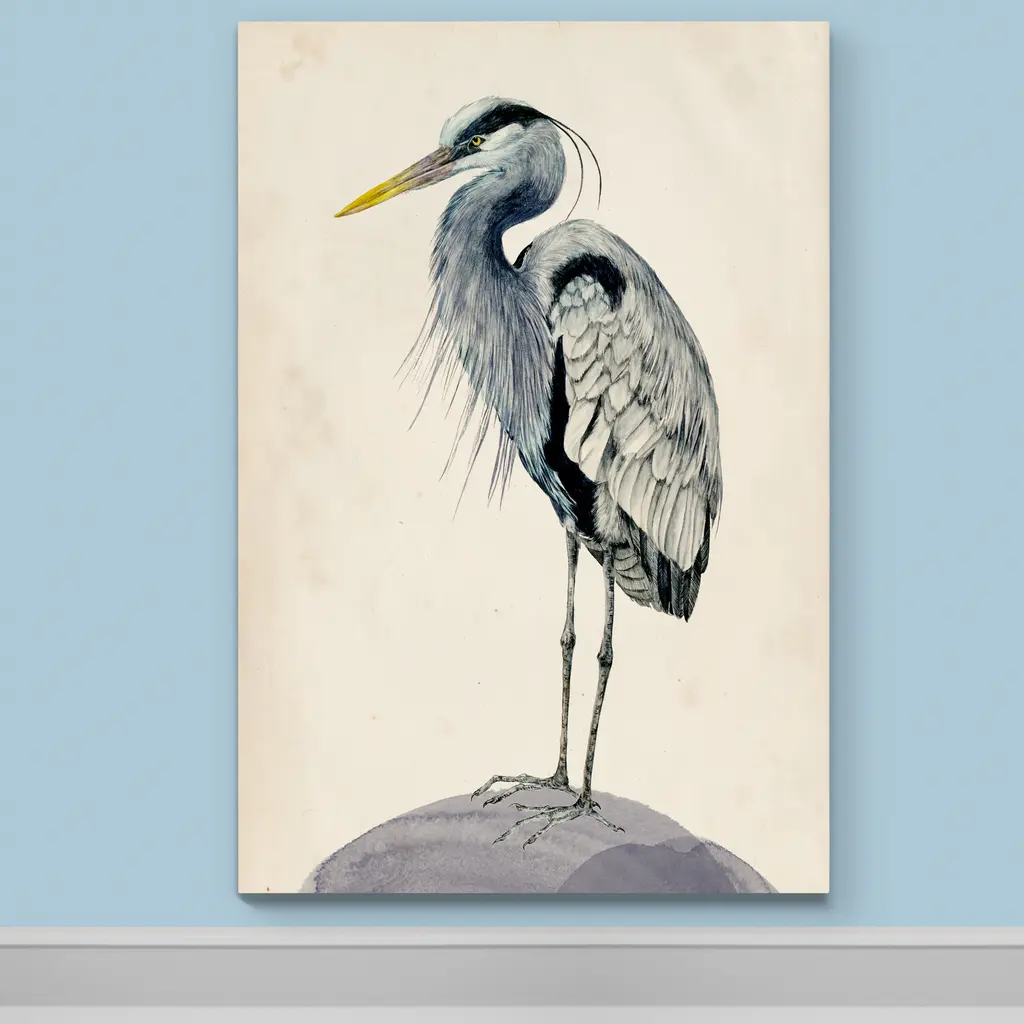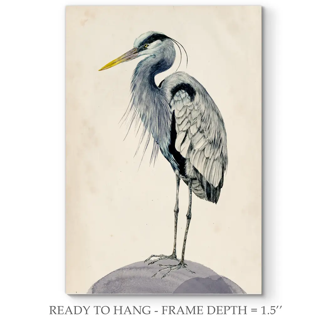 Blue Heron Rendering II -Premium Gallery Wrapped Canvas - Ready to Hang A premium hand stretched gallery wrapped canvas print created to last. Featuring a beveled a solid wood stretcher bar, each piece comes ready to hand 5 SIZES AVAILABLE 8''X12'' - Overall Size 16''x20'' - Overall Size 18''x27'' - Overall Size 24''x36'' - Overall Size 32''x48'' - Overall Size Each piece is made to order. Built to Last Each piece comes ready to hang Solid wood stretcher Fade and Water resistant Made domestically