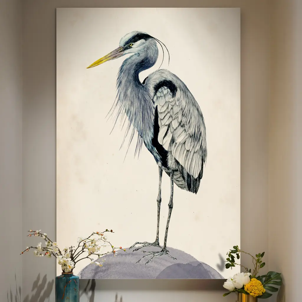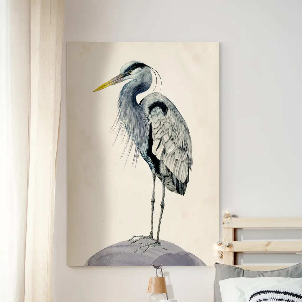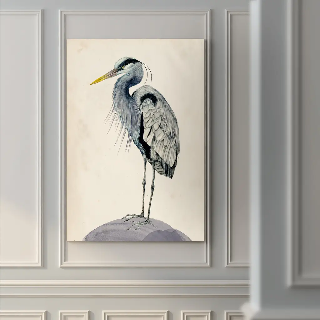 Blue Heron Rendering II -Premium Gallery Wrapped Canvas - Ready to Hang A premium hand stretched gallery wrapped canvas print created to last. Featuring a beveled a solid wood stretcher bar, each piece comes ready to hand 5 SIZES AVAILABLE 8''X12'' - Overall Size 16''x20'' - Overall Size 18''x27'' - Overall Size 24''x36'' - Overall Size 32''x48'' - Overall Size Each piece is made to order. Built to Last Each piece comes ready to hang Solid wood stretcher Fade and Water resistant Made domestically