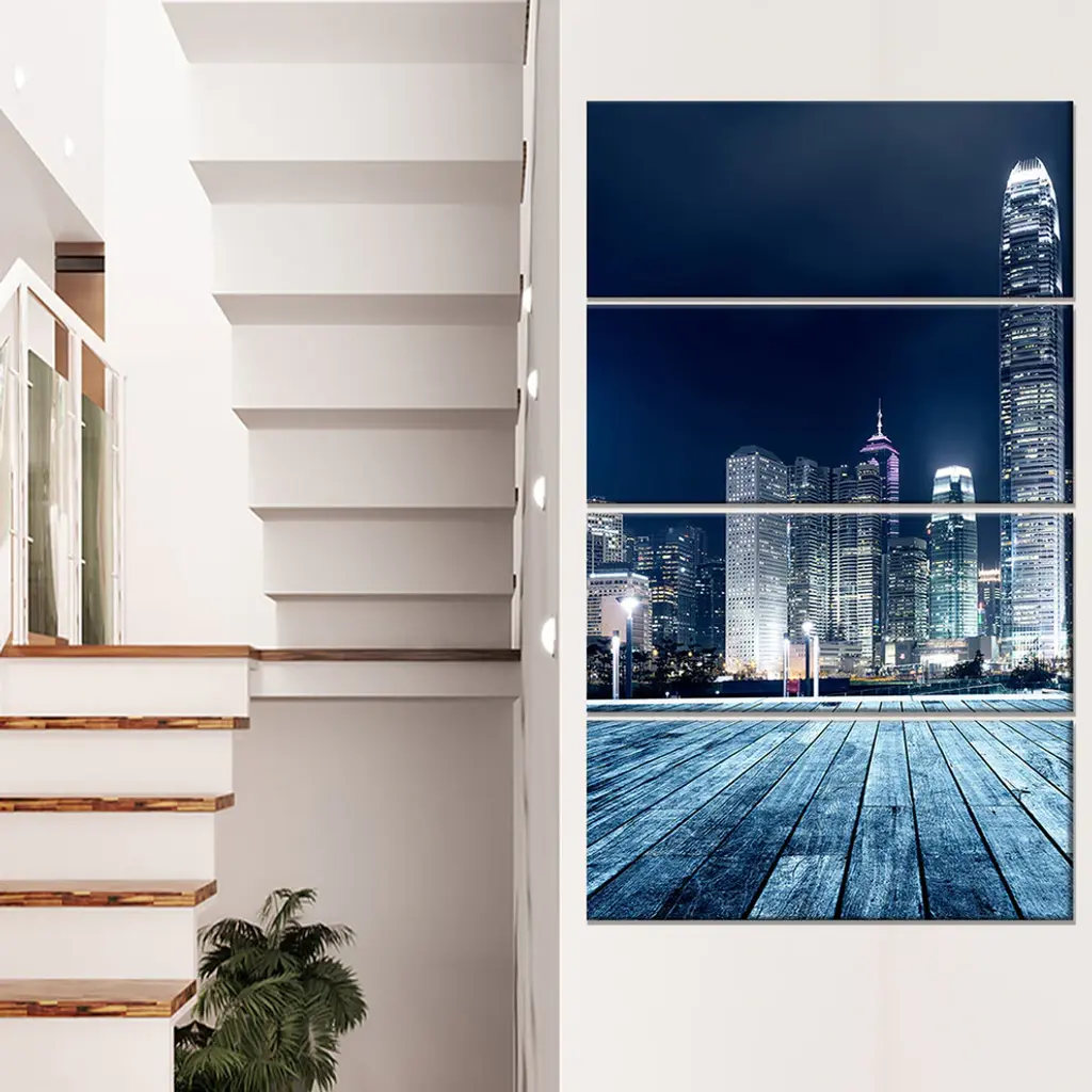 "Blue Hong Kong City Skyline" Canvas Print, 4 Panels