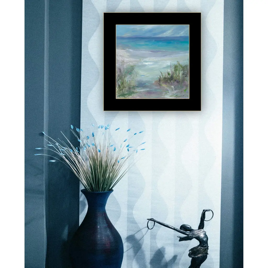 The blue horizons 1 black framed print wall art is the perfect decorative accessory for your home. This print is a visual artistic expression that allows you to decorate your space in style. Reproduced for you on paper, this hanging decorative accent will be a trendy and fashionable way to dress your walls. Hang on your wall to add some up to date fashion and decoration. Instantly liven up your space with this art that brings color and dimension to your walls. 14" H x 14" W x 1" D