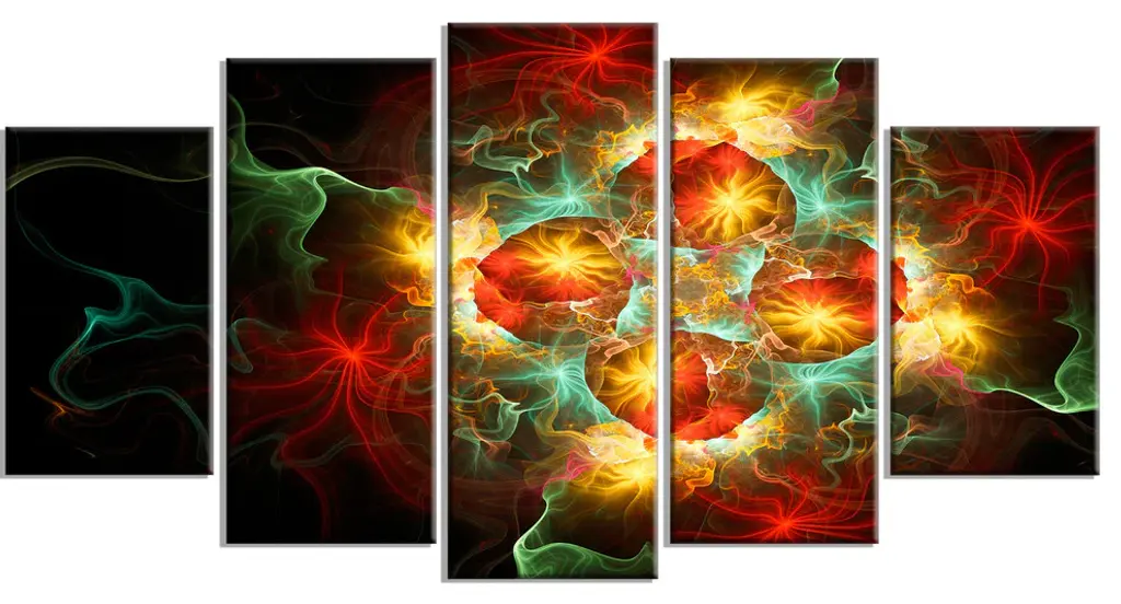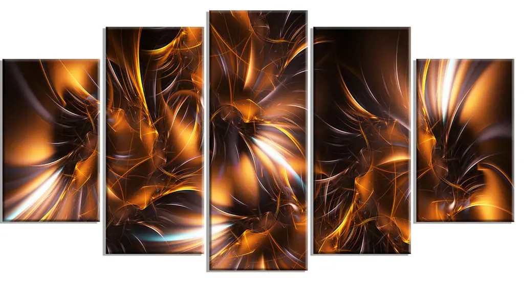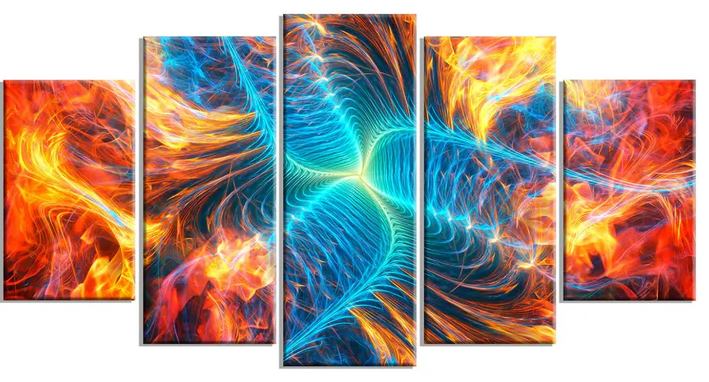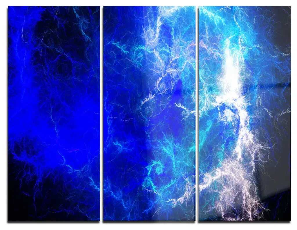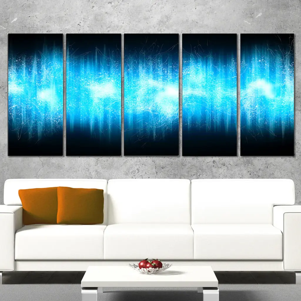 "Blue Ice Flame" Abstract Digital Canvas Print, 5 Panels, 60"x28"
