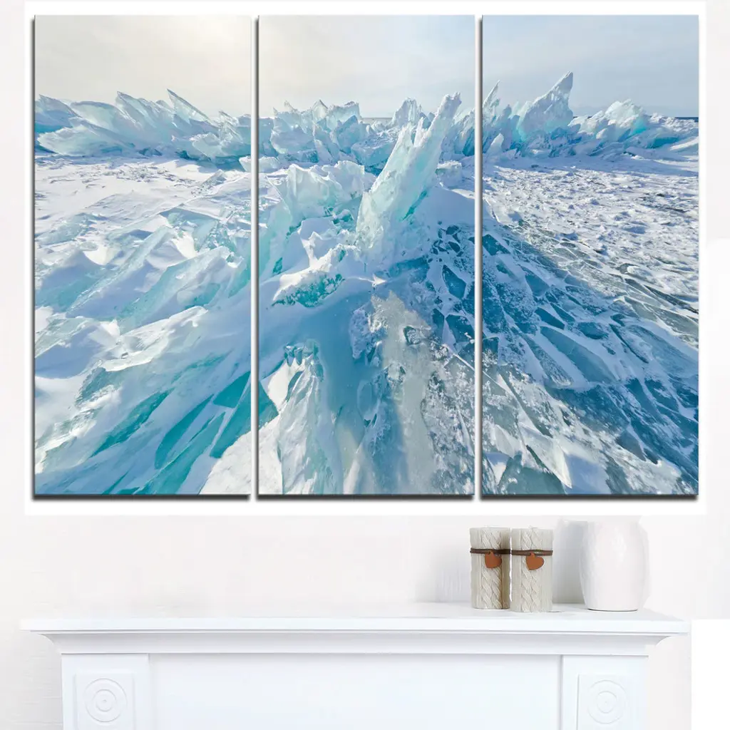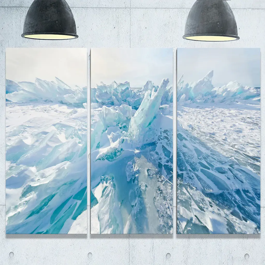 "Blue Ice Hummocks In Siberia Lake Baikal" Metal Wall Art, 3 Panels, 36"x28"
