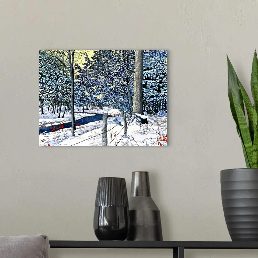 Contemporary artwork of a serene countryside scene.