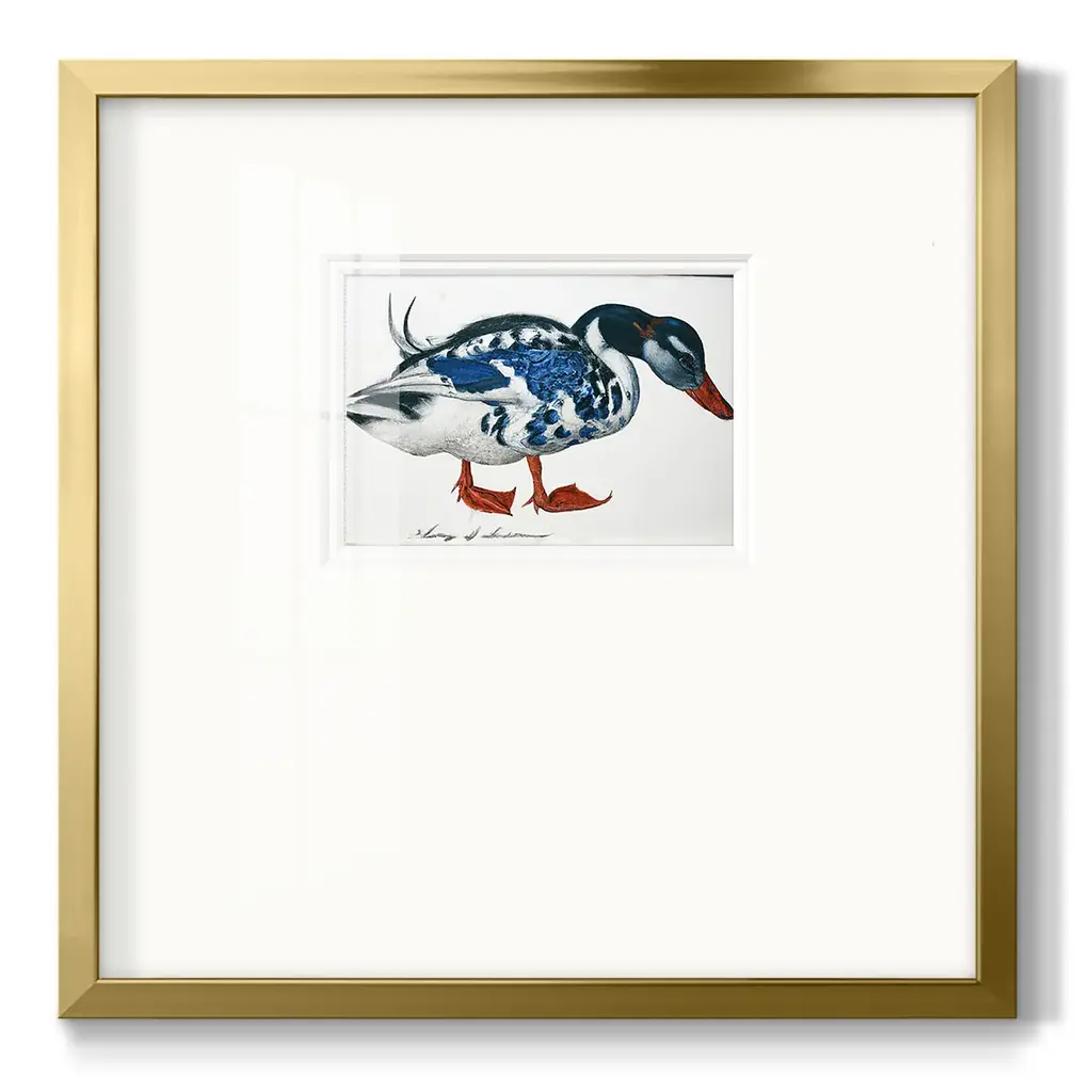 Blue MallardPremium Framed Print A framed cold pressed paper print featuring superior double matting and quality frame. 2 SIZES AVAILABLE 16''X16''' - Overall Size 20''X20''' - Overall Size Each piece is made to order. Each piece comes with hanging hardware. Made in the USA Ready to Hang Giclee Paper Print Plexiglass Beveled Matt Board Double Matte Board