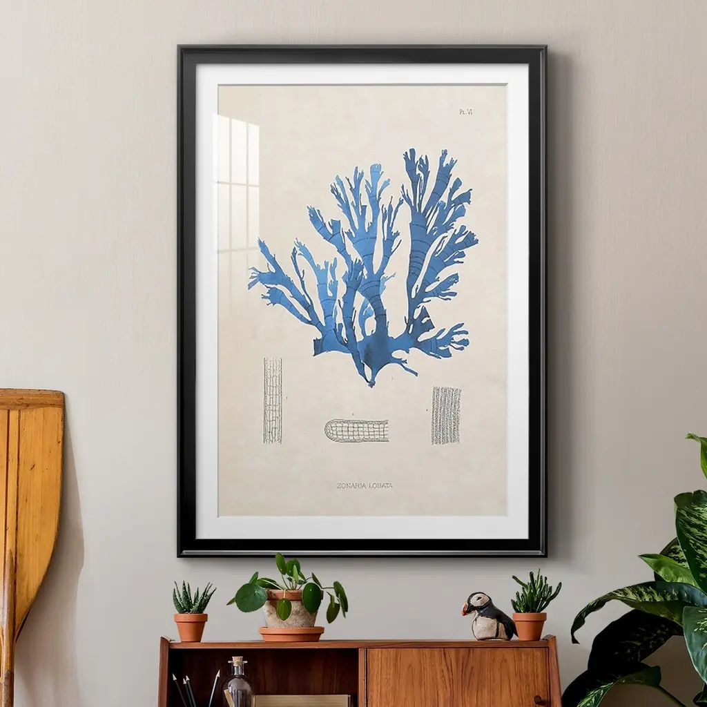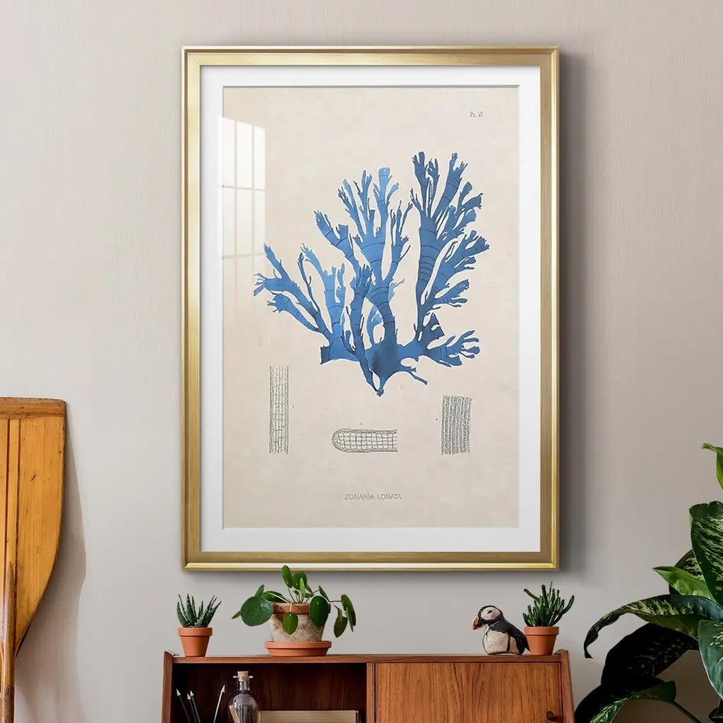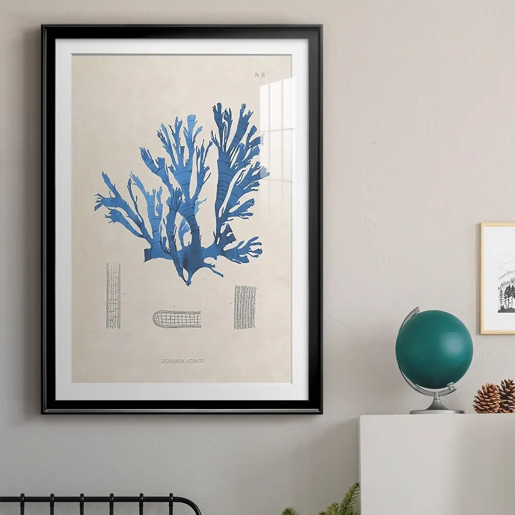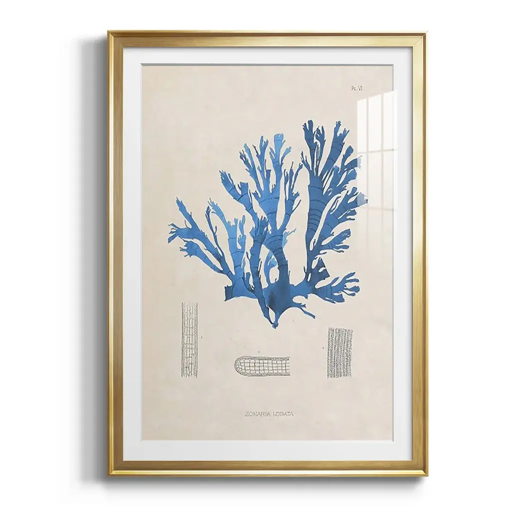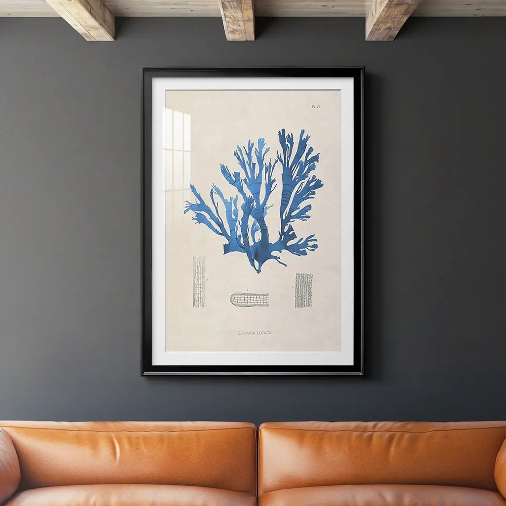 Blue Marine Algae IX Premium Framed Print - Ready to Hang A Premium Framed Print created to last. Framed in distressed wood and available in an array of sizes and colors Featuring a beveled a solid wood stretcher bar, each piece comes ready to hand 4 SIZES AVAILABLE 30.5''X42.5'' - Overall Size 26.5'X36.5'' - Overall Size 22.5''x30.5'' - Overall Size 18.5''x24.5'' - Overall Size Each piece is made to order. Each piece comes with hanging hardware. Made in the USA Ready to Hang Giclee Paper Print Acrylic Glass Beveled Matt Board