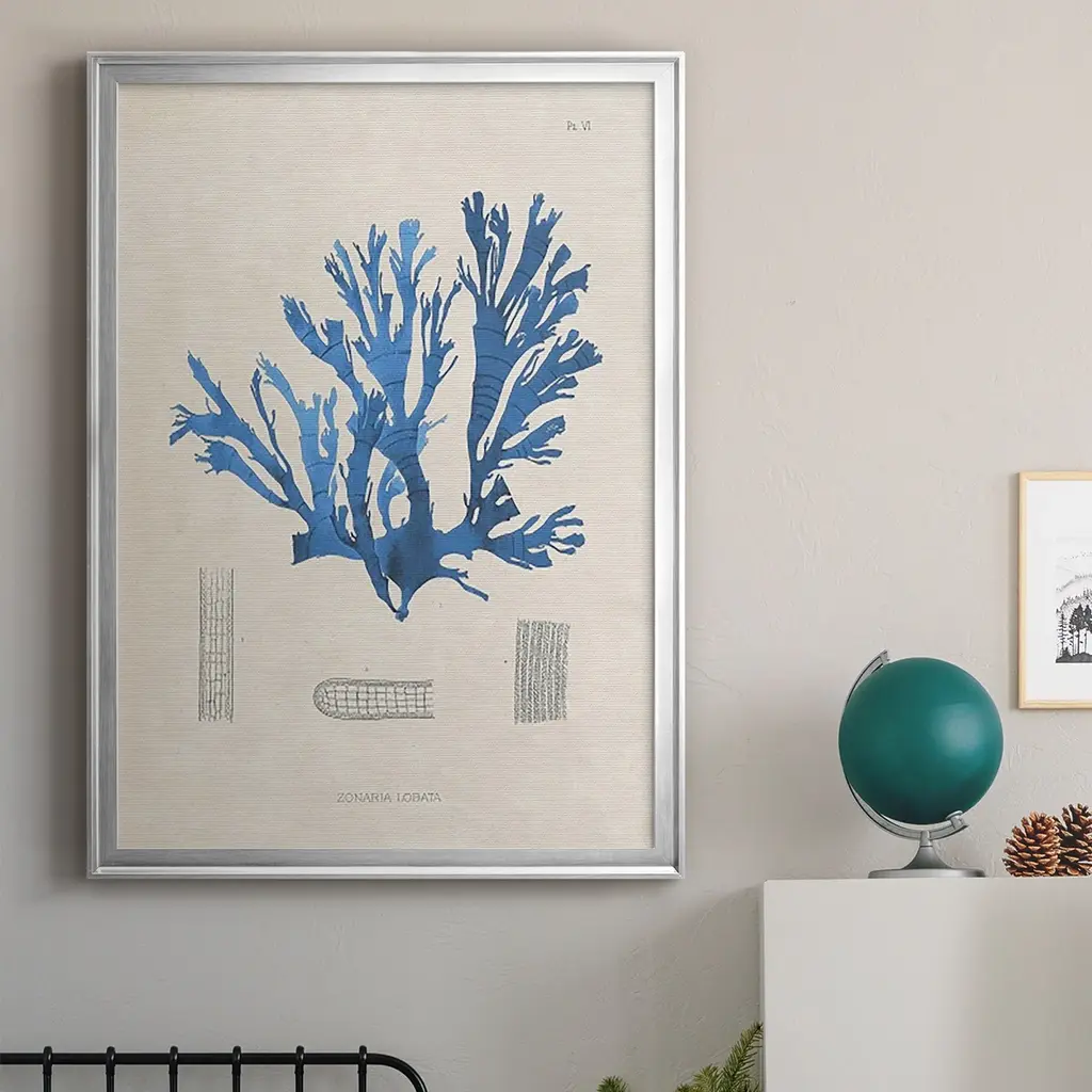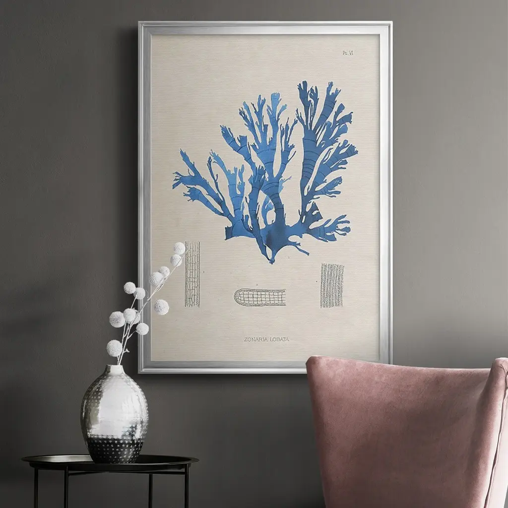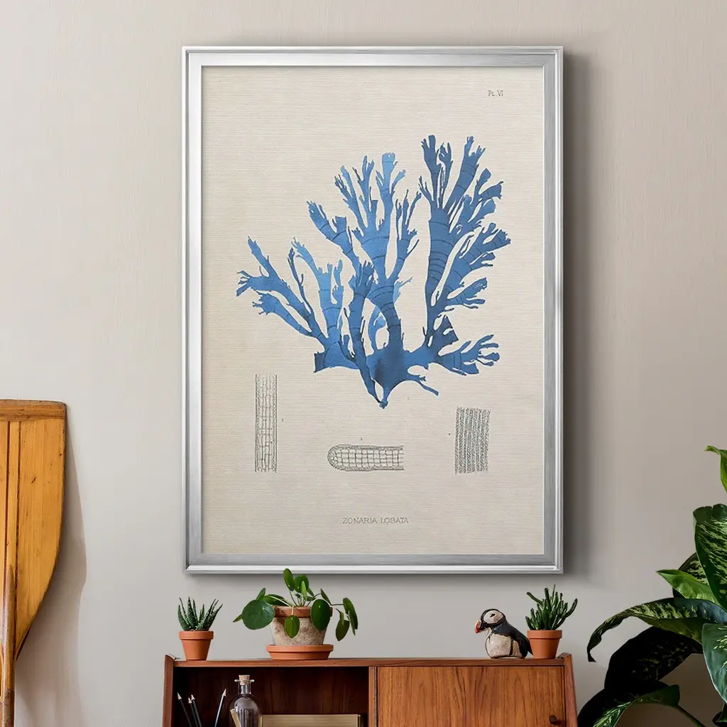 Blue Marine Algae IX Premium Framed Print - Ready to Hang A Premium Framed Print created to last. Framed in distressed wood and available in an array of sizes and colors Featuring a beveled a solid wood stretcher bar, each piece comes ready to hand 4 SIZES AVAILABLE 30.5''X42.5'' - Overall Size 26.5'X36.5'' - Overall Size 22.5''x30.5'' - Overall Size 18.5''x24.5'' - Overall Size Each piece is made to order. Each piece comes with hanging hardware. Made in the USA Ready to Hang