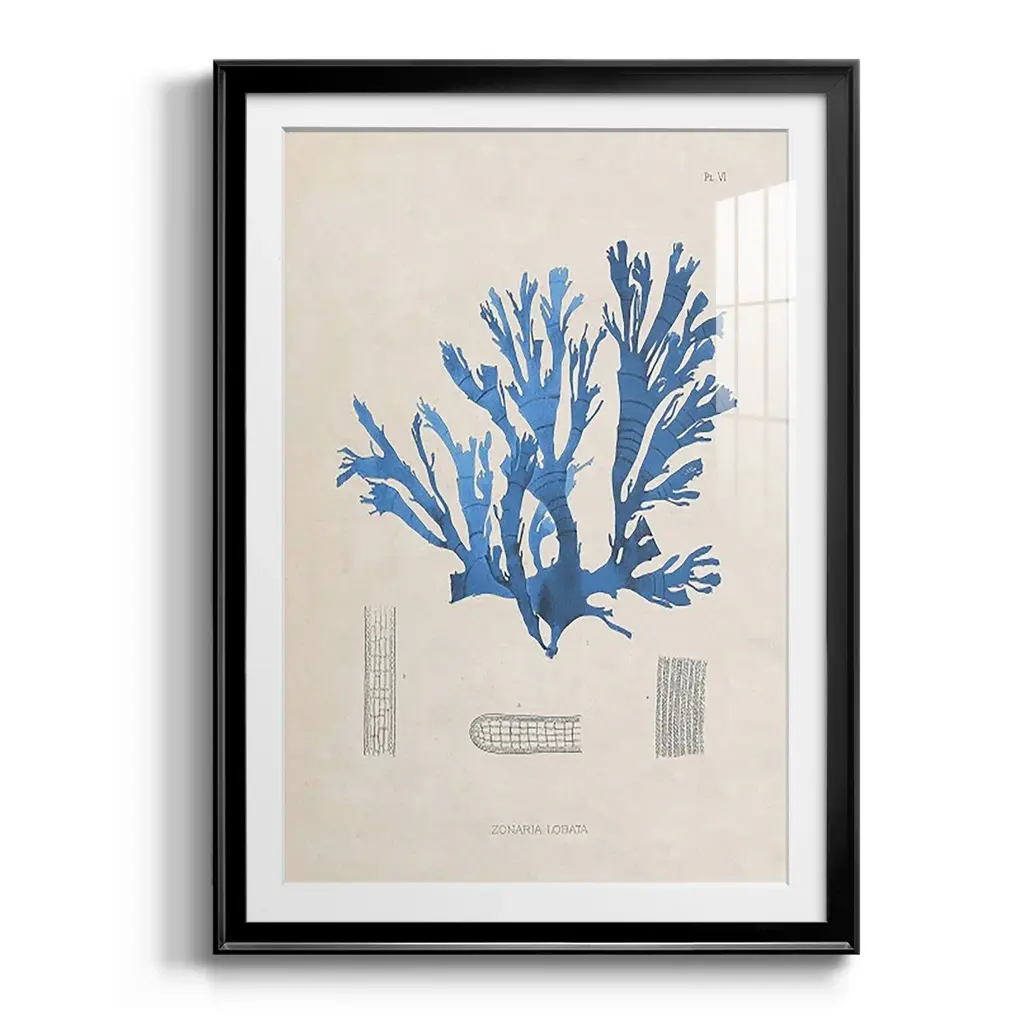 Blue Marine Algae IX Premium Framed Print - Ready to Hang A Premium Framed Print created to last. Framed in distressed wood and available in an array of sizes and colors Featuring a beveled a solid wood stretcher bar, each piece comes ready to hand 4 SIZES AVAILABLE 30.5''X42.5'' - Overall Size 26.5'X36.5'' - Overall Size 22.5''x30.5'' - Overall Size 18.5''x24.5'' - Overall Size Each piece is made to order. Each piece comes with hanging hardware. Made in the USA Ready to Hang Giclee Paper Print Acrylic Glass Beveled Matt Board