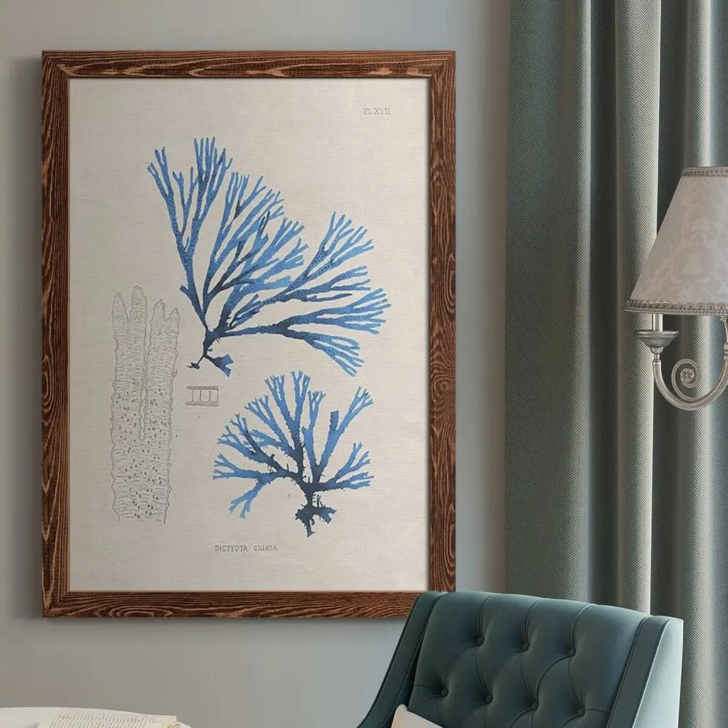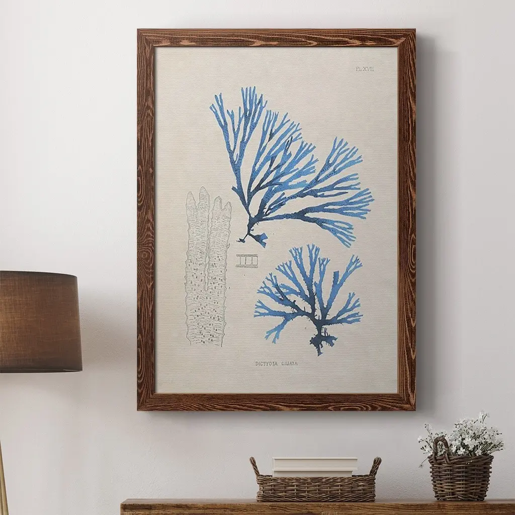 Blue Marine Algae V-Premium Framed Canvas - Ready To Hang - 27.5x37.5 - Walnut