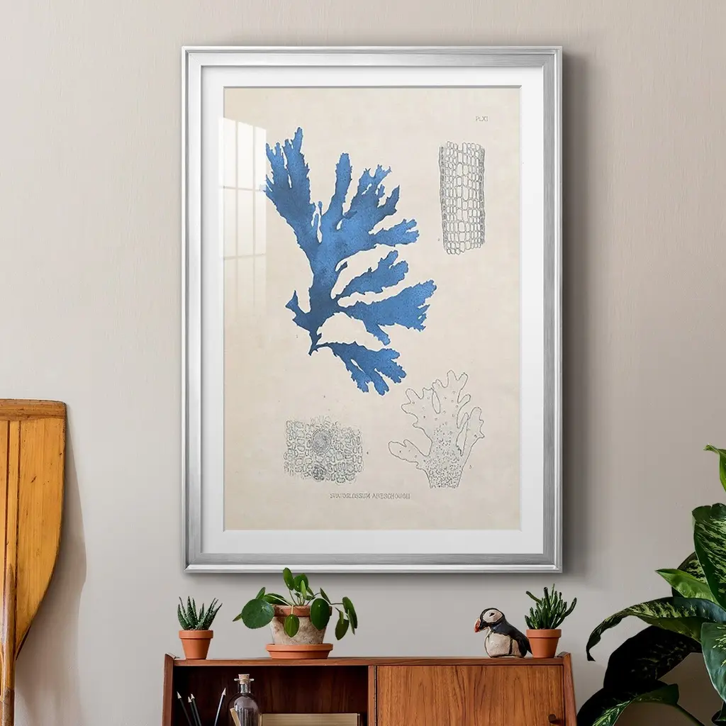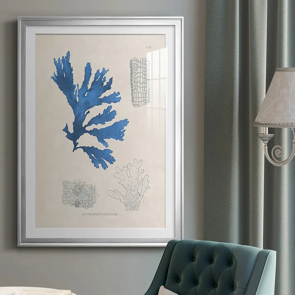 Blue Marine Algae VIII Premium Framed Print - Ready to Hang A Premium Framed Print created to last. Framed in distressed wood and available in an array of sizes and colors Featuring a beveled a solid wood stretcher bar, each piece comes ready to hand 4 SIZES AVAILABLE 30.5''X42.5'' - Overall Size 26.5'X36.5'' - Overall Size 22.5''x30.5'' - Overall Size 18.5''x24.5'' - Overall Size Each piece is made to order. Each piece comes with hanging hardware. Made in the USA Ready to Hang Giclee Paper Print Acrylic Glass Beveled Matt Board