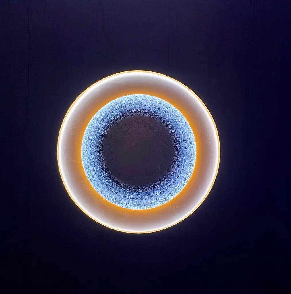 Blue Moon Wall Art by Christian FriedlLimited Edition of 3Dimensions: D 25 x W 140 x H 140 cm.Materials: Oak, concrete.Blue Moon is a rare natural spectacle for a second full moon within a calendar month.As a luminous wall sculpture, I create an extraordinary atmosphere in your living space.My frame is made of oak posts. They are glued together in their natural form, charred with fire, brushed to the touch, leached black-brown, and protected with natural oil.In my center, the moon shines from two sides. It is cast from concrete, dyed, and oiled. Surrounded by a 24-carat gold-plated steel circle ring.A warm – white light strip around me creates an indirect lighting mood. Two RGB light strips illuminate the moon and the passe-partout in more than 1000 different colors.Controllable via an app and compatible with Alexa, you can program these three light circles independently of each other and compose your own lighting mood.Christian FriedlLonging is a funny thing. Some people have it, others follow it - and sometimes it is the particularly difficult times in life that remind you of what lies dormant within you. That's exactly how it was for me. The path to this was marked by a break from crafting. After all, it was 23 years and hundreds of exciting projects that I implemented together with many great customers and architects before I grappled with the question of what my life still had in store for me just before my 50th birthday. And that is exactly what brought me back to my professional roots: working with the living and sustainable material wood. Over time, I discovered that I was not made for the system. Returning to this very special material showed me where the path leads, although for me the creative process with and around the material wood is the main focus.