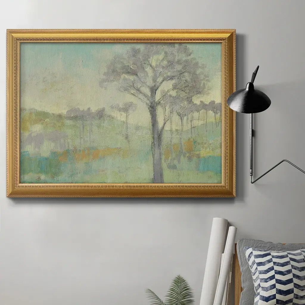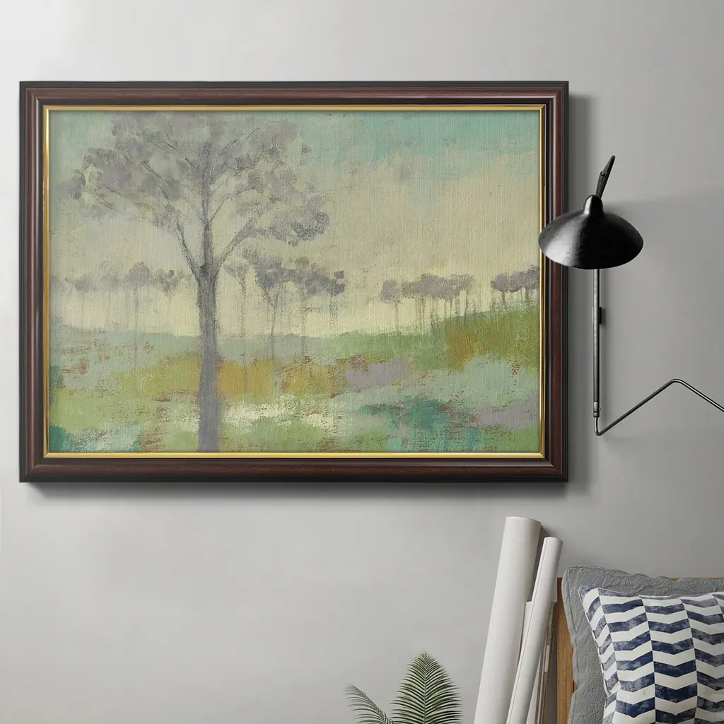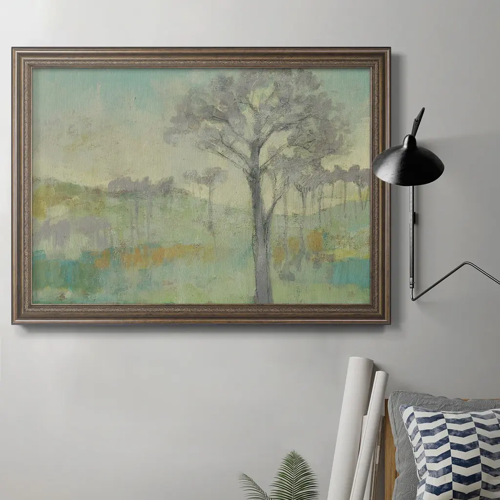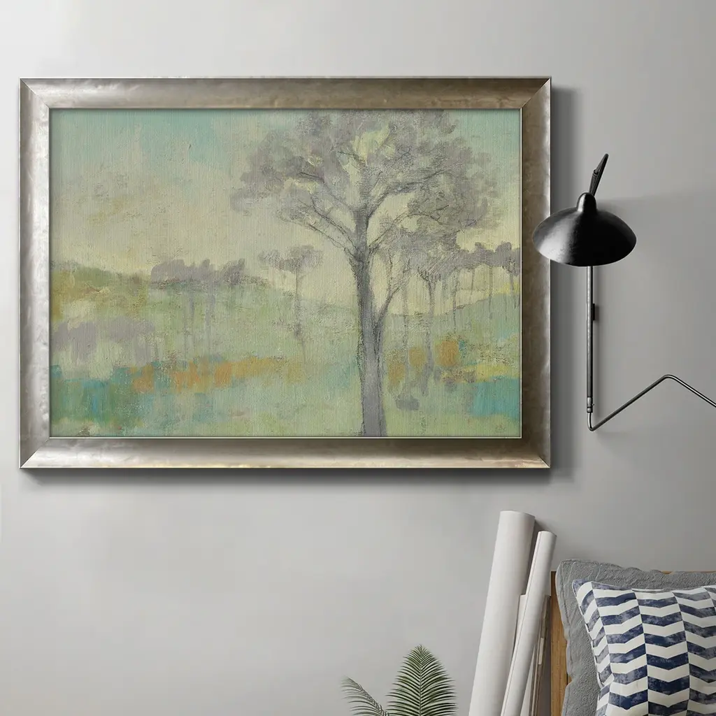Blue Mountain Peaks II Premium Framed Canvas- Ready to Hang A Premium Framed Canvas created to last. Framed in distressed wood and available in an array of sizes and colors Featuring a beveled a solid wood stretcher bar, each piece comes ready to hand 3 SIZES AVAILABLE 16''X20'' - Overall Size 18'X27'' - Overall Size 24''x36'' - Overall Size Each piece is made to order. Each piece comes with hanging hardware. Made in the USA Ready to Hang Giclee Paper Print Acrylic Glass Beveled Matt Board