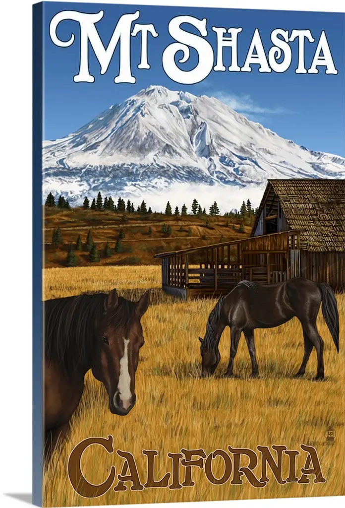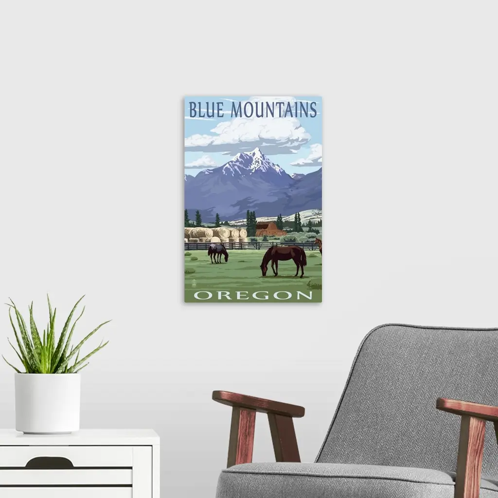 Blue Mountains Scene - Oregon: Retro Travel Poster wall art for home and office decor. Discover canvas art prints, photos, mural, big canvas art and framed wall art in GreatBigCanvas.com's varied collections.