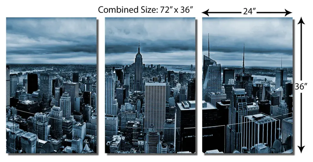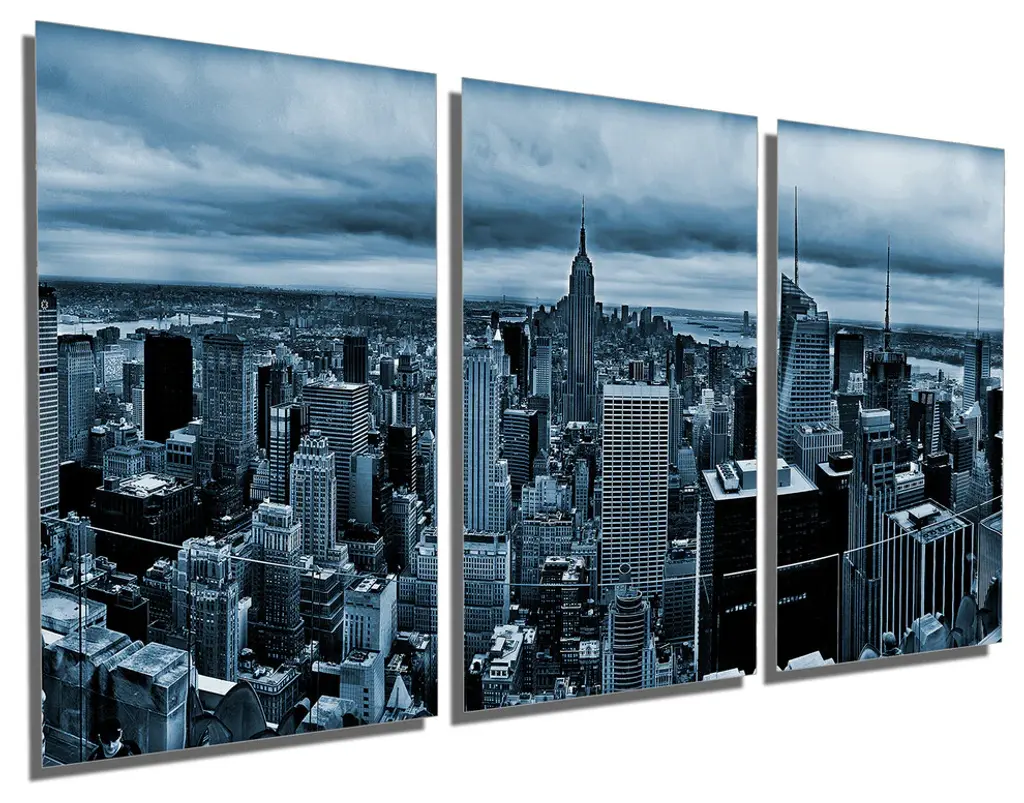 72"œ x 36"œ total size. Ready To Hang! (3 pieces - 24"œ x 36"œ each). 3 Panel Split (Triptych) Beautiful New York City skyline with blue tint. Modern metal wall art for home or office wall decor & interior design. Printed on Luxurious, HD aluminum glossy metal panels. Multi panel art.. HD aluminum panels. Metal print wall art. Includes Shadow Wall Mount on the back.• Aluminum Metal Wall Art• Made in USA• Ready to hang - No assembly required• Shadow mount hardware on the back• 0.045"œ thick HD Aluminum Panels• Scratch resistant, glossy finish• Superb color clarity, luxurious prints• Epson printing process• For indoor or moisture rich environment use• Easy to clean. Gently wipe with microfiber cloth.