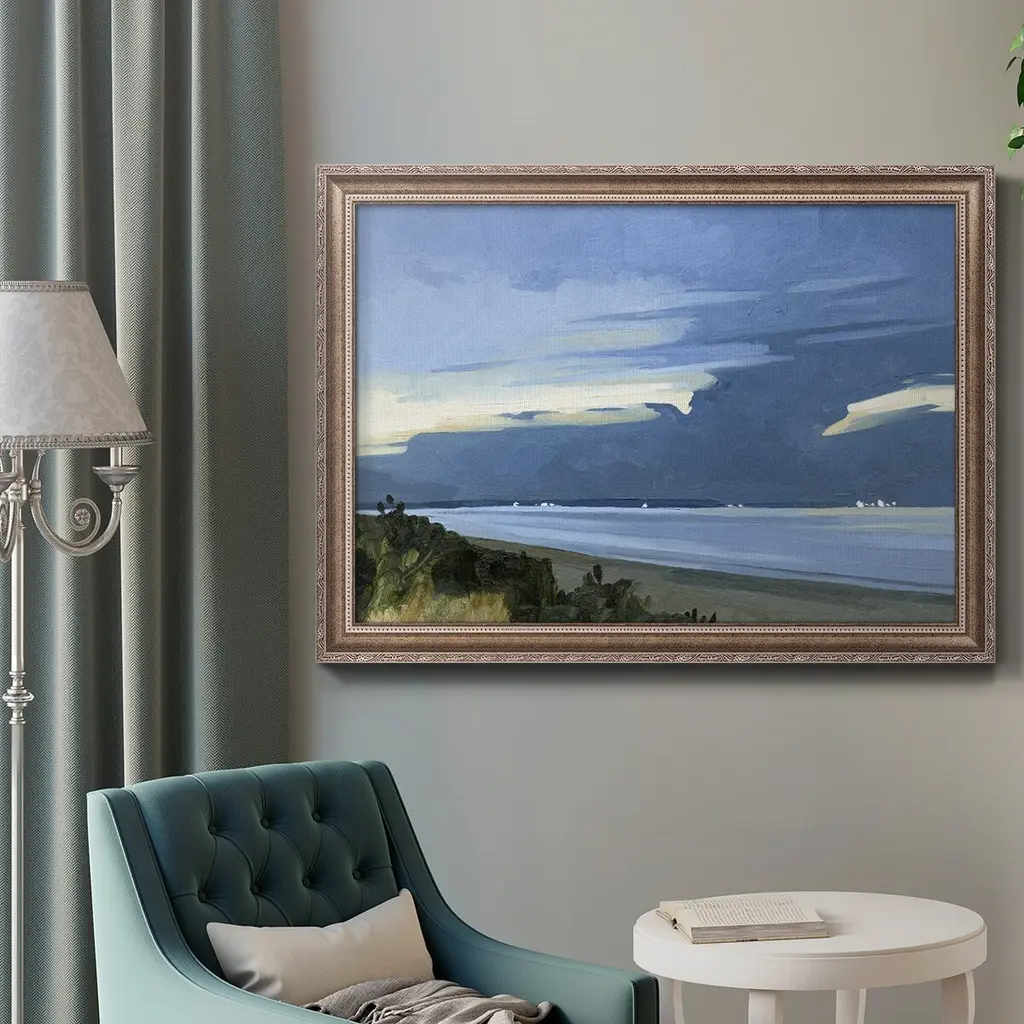 Blue Ocean Evening I Premium Framed Canvas- Ready To Hang - 24x36 - Pewter