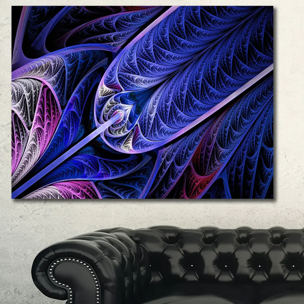 Blue On Black Fractal Stained Glass, Oversized Abstract Canvas Art Print, 60x40