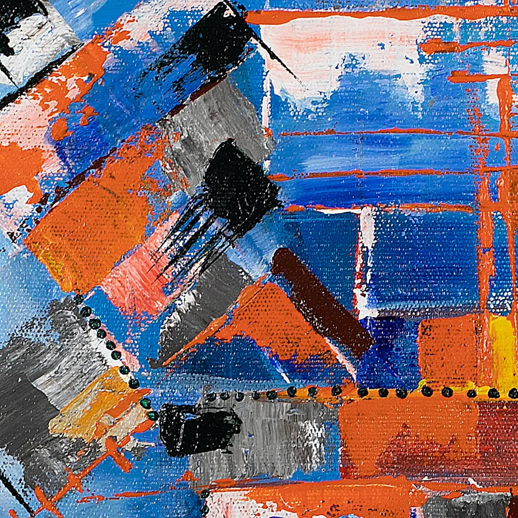 Blue Orange Brown Modern Abstract Geometric Acrylic Painting- Train Station
