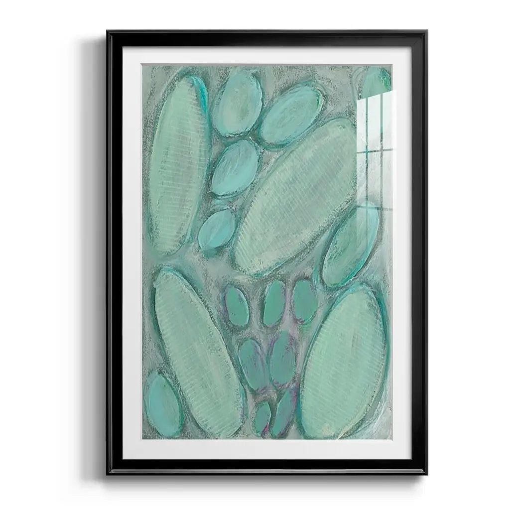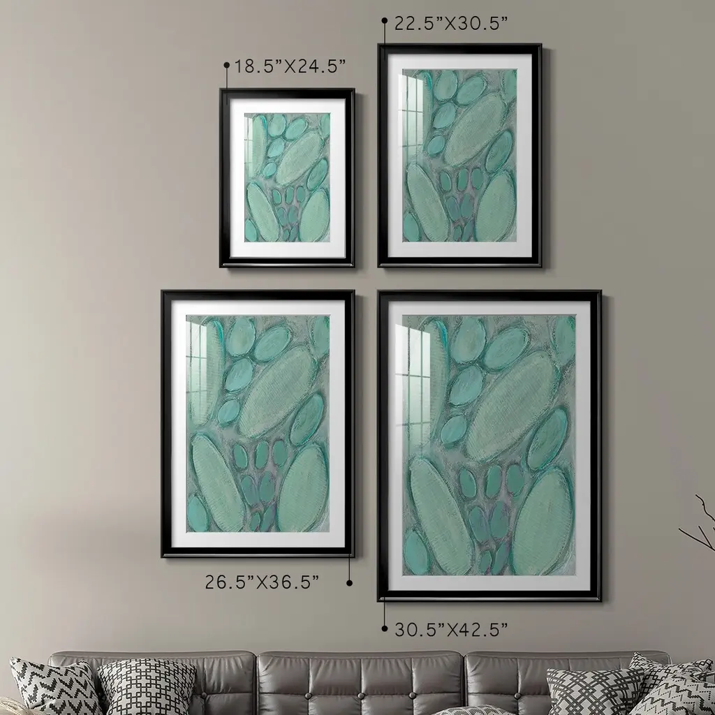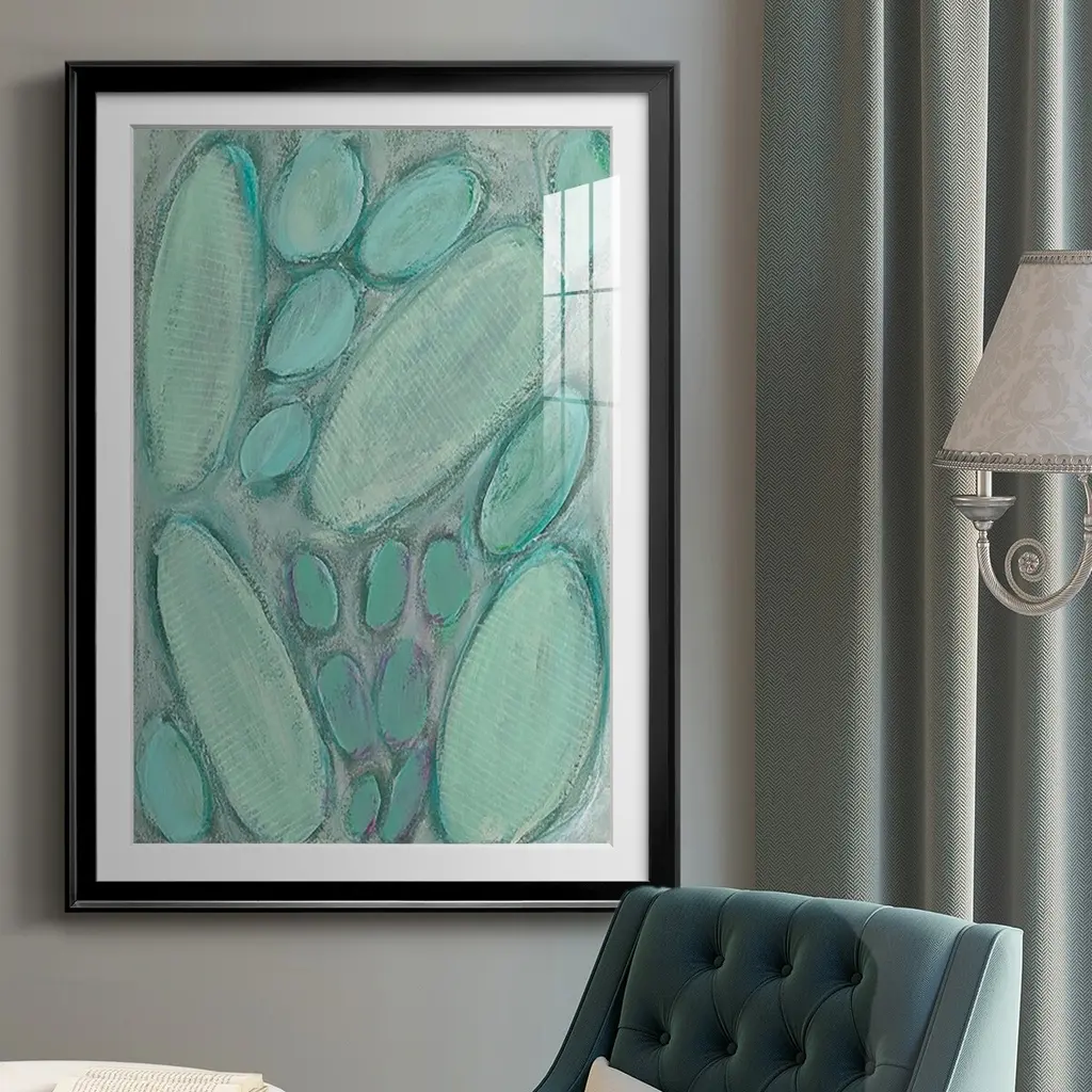 Blue Orbs I Premium Framed Print - Ready to Hang A Premium Framed Print created to last. Framed in distressed wood and available in an array of sizes and colors Featuring a beveled a solid wood stretcher bar, each piece comes ready to hand 4 SIZES AVAILABLE 30.5''X42.5'' - Overall Size 26.5'X36.5'' - Overall Size 22.5''x30.5'' - Overall Size 18.5''x24.5'' - Overall Size Each piece is made to order. Each piece comes with hanging hardware. Made in the USA Ready to Hang Giclee Paper Print Acrylic Glass Beveled Matt Board