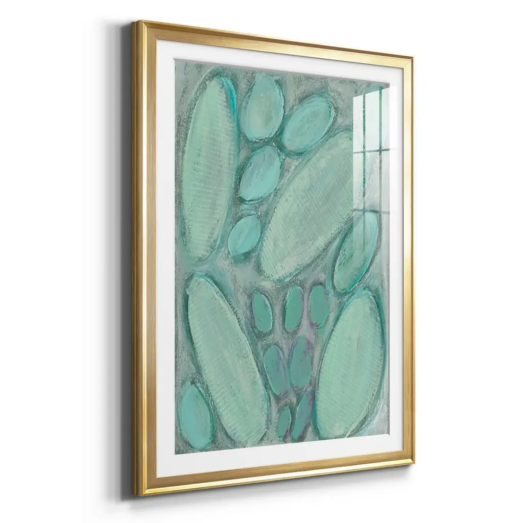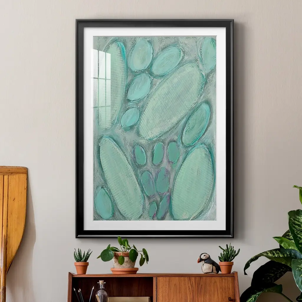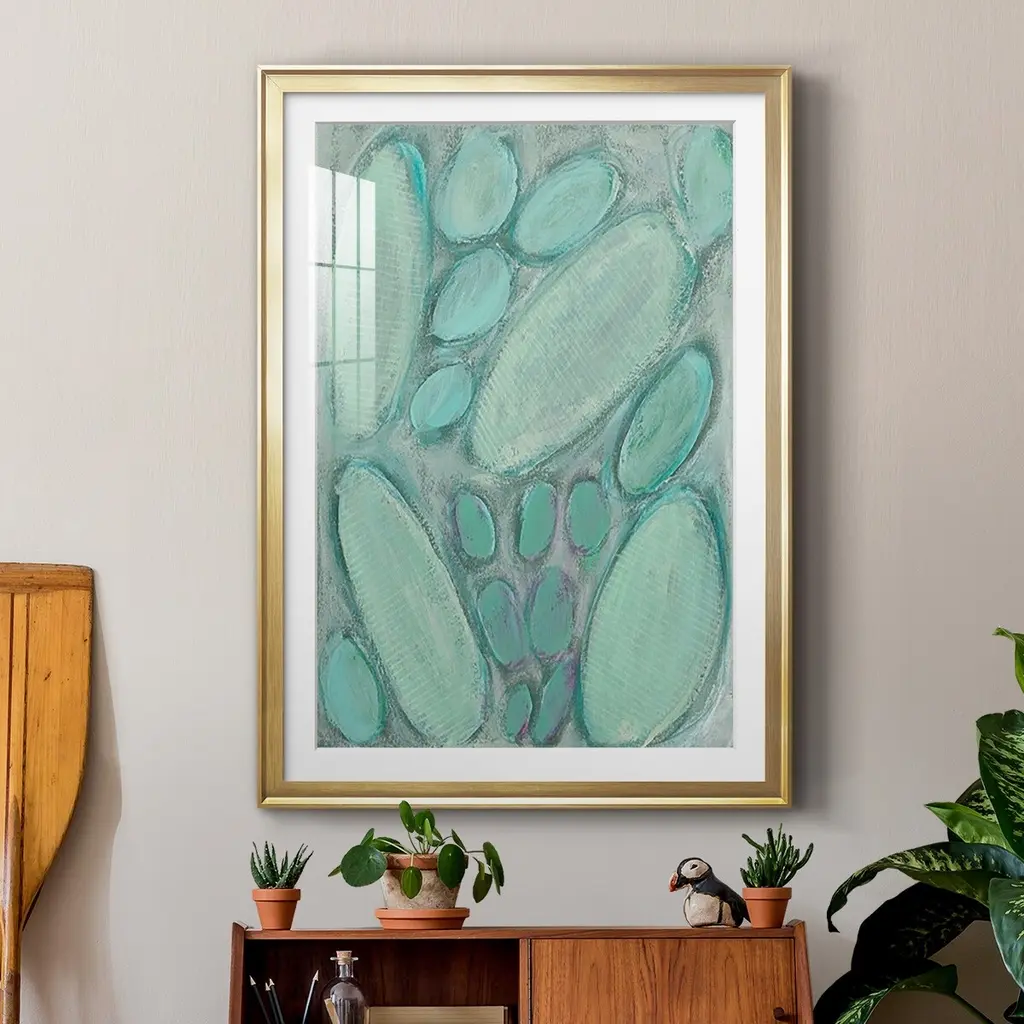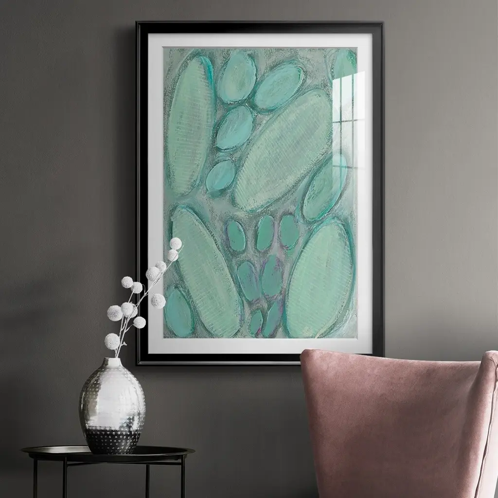 Blue Orbs I Premium Framed Print - Ready to Hang A Premium Framed Print created to last. Framed in distressed wood and available in an array of sizes and colors Featuring a beveled a solid wood stretcher bar, each piece comes ready to hand 4 SIZES AVAILABLE 30.5''X42.5'' - Overall Size 26.5'X36.5'' - Overall Size 22.5''x30.5'' - Overall Size 18.5''x24.5'' - Overall Size Each piece is made to order. Each piece comes with hanging hardware. Made in the USA Ready to Hang Giclee Paper Print Acrylic Glass Beveled Matt Board