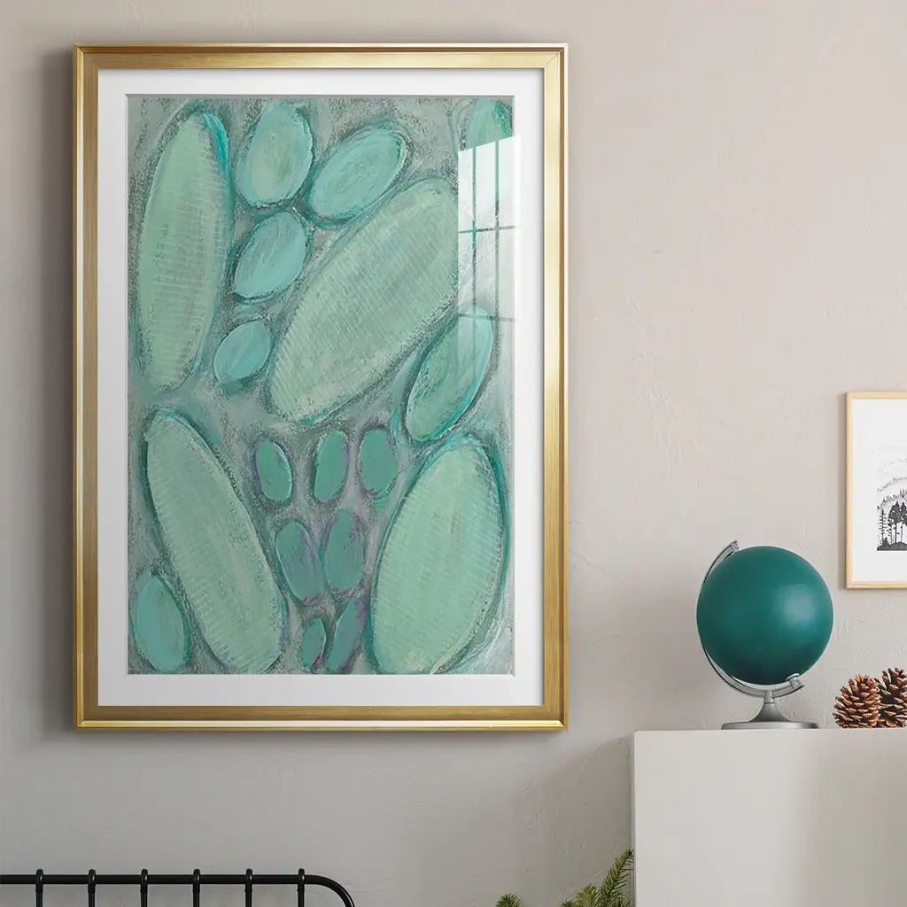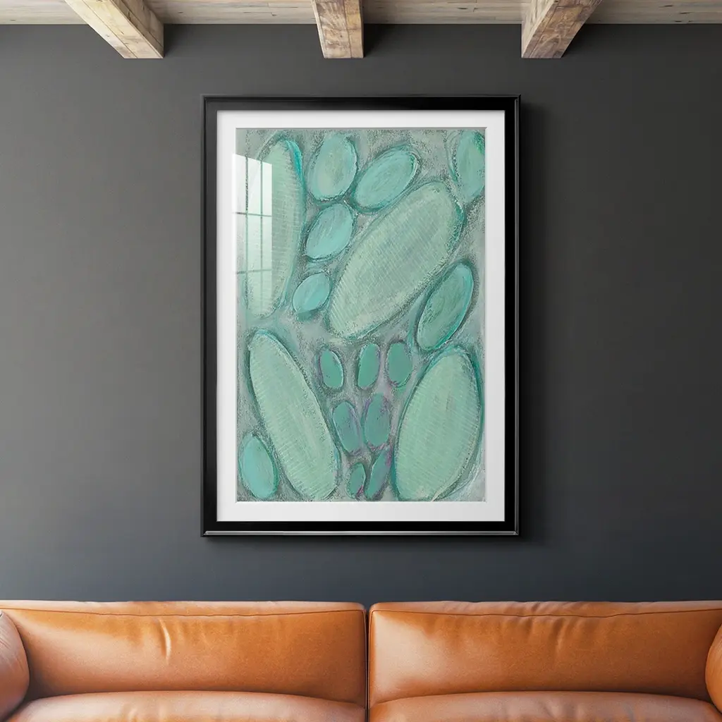 Blue Orbs I Premium Framed Print - Ready to Hang A Premium Framed Print created to last. Framed in distressed wood and available in an array of sizes and colors Featuring a beveled a solid wood stretcher bar, each piece comes ready to hand 4 SIZES AVAILABLE 30.5''X42.5'' - Overall Size 26.5'X36.5'' - Overall Size 22.5''x30.5'' - Overall Size 18.5''x24.5'' - Overall Size Each piece is made to order. Each piece comes with hanging hardware. Made in the USA Ready to Hang Giclee Paper Print Acrylic Glass Beveled Matt Board
