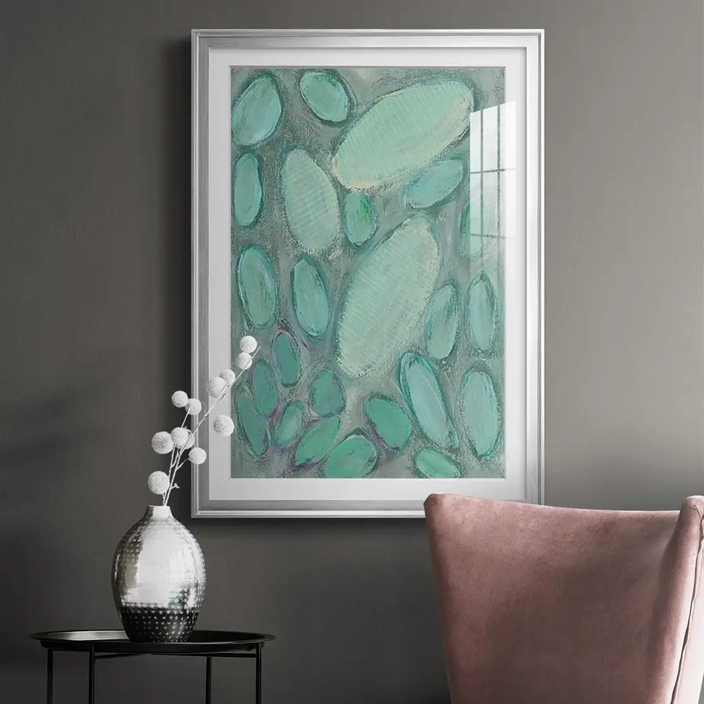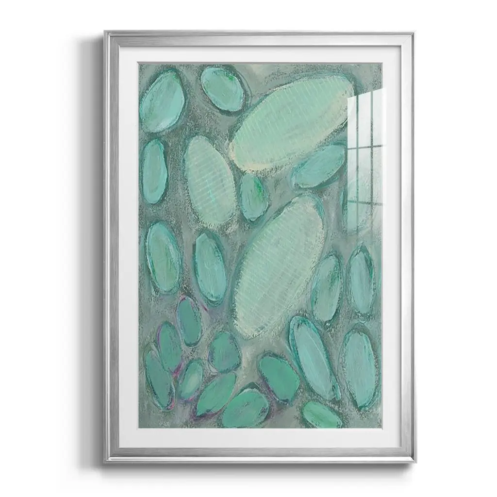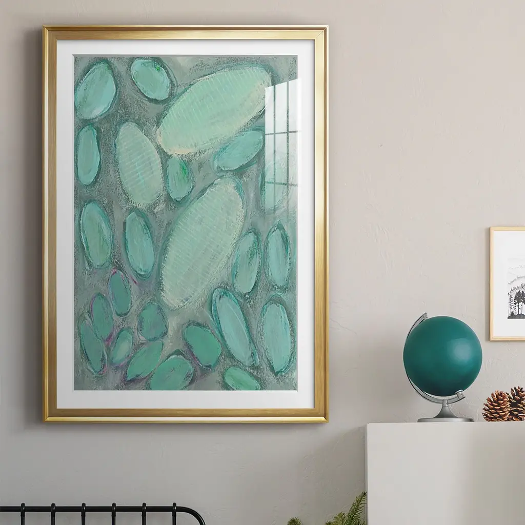 Blue Orbs II Premium Framed Print - Ready to Hang A Premium Framed Print created to last. Framed in distressed wood and available in an array of sizes and colors Featuring a beveled a solid wood stretcher bar, each piece comes ready to hand 4 SIZES AVAILABLE 30.5''X42.5'' - Overall Size 26.5'X36.5'' - Overall Size 22.5''x30.5'' - Overall Size 18.5''x24.5'' - Overall Size Each piece is made to order. Each piece comes with hanging hardware. Made in the USA Ready to Hang Giclee Paper Print Acrylic Glass Beveled Matt Board