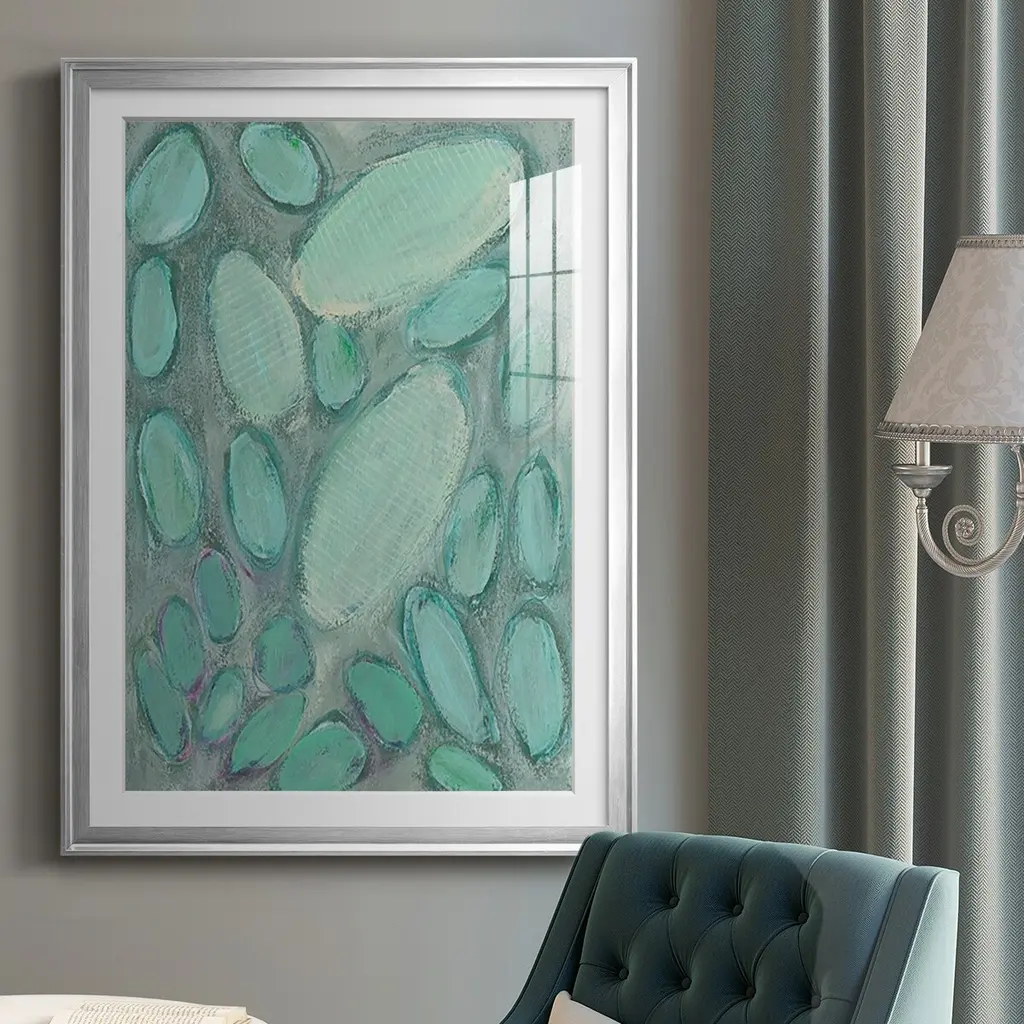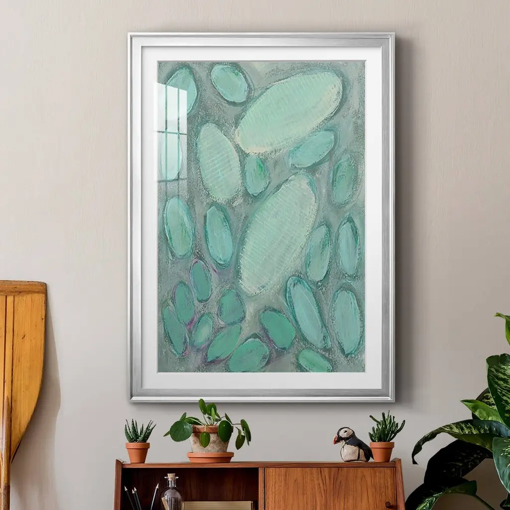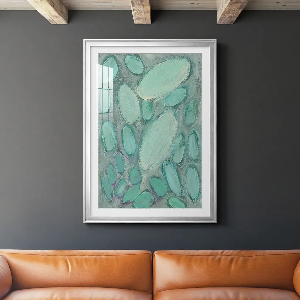 Blue Orbs II Premium Framed Print - Ready to Hang A Premium Framed Print created to last. Framed in distressed wood and available in an array of sizes and colors Featuring a beveled a solid wood stretcher bar, each piece comes ready to hand 4 SIZES AVAILABLE 30.5''X42.5'' - Overall Size 26.5'X36.5'' - Overall Size 22.5''x30.5'' - Overall Size 18.5''x24.5'' - Overall Size Each piece is made to order. Each piece comes with hanging hardware. Made in the USA Ready to Hang Giclee Paper Print Acrylic Glass Beveled Matt Board