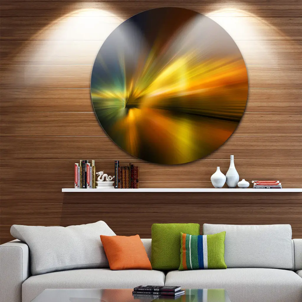 Bring Contemporary Abstraction to your home with this large Circle Metal wall art. This Blue Over Gold Texture Metal Artwork makes it the focal point of any room or office. - White Gloss Coating ensures colors are extra vibrant with light reflection.- Aluminum grade Sheet Metal with 1 inch mounting frame on the back giving the illusion that the artwork is floating on the wall..- Mounting Brackets are included along with instructions.- High Quality Digital images are created directly into a glossy aluminum panel producing a stunning and captivating print into the glossy finish of the metal.- Water, Fire and Scratch resistant HD Aluminum panels.- Looks better than any photo paper and guaranteed to last at least 20 years- Easy to clean with a microfiber cloth. Colors are far superior to regular Canvas Art. - Easy to Hang
