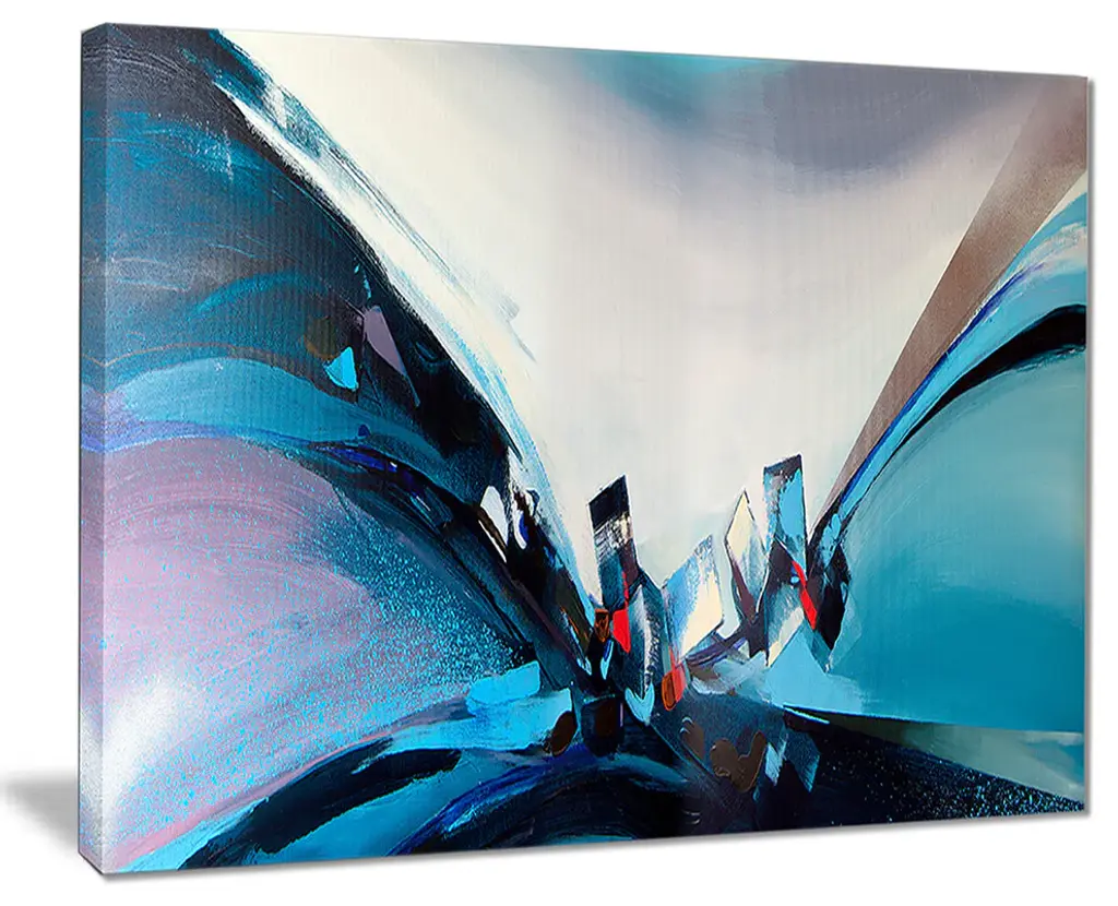 The Blue Panoramic Abstract Design canvas art print is sure to make an impression on anyone who sees it. This artwork is gallery wrapped around a 1-inch solid wood frame and arrives carefully packaged and entirely ready to hang on the wall. Design Art only uses the highest resolution and pigments to ensure a crisp colorful print that is never faded or pixelated. This artwork is sure to be a conversation starter in any home or office.