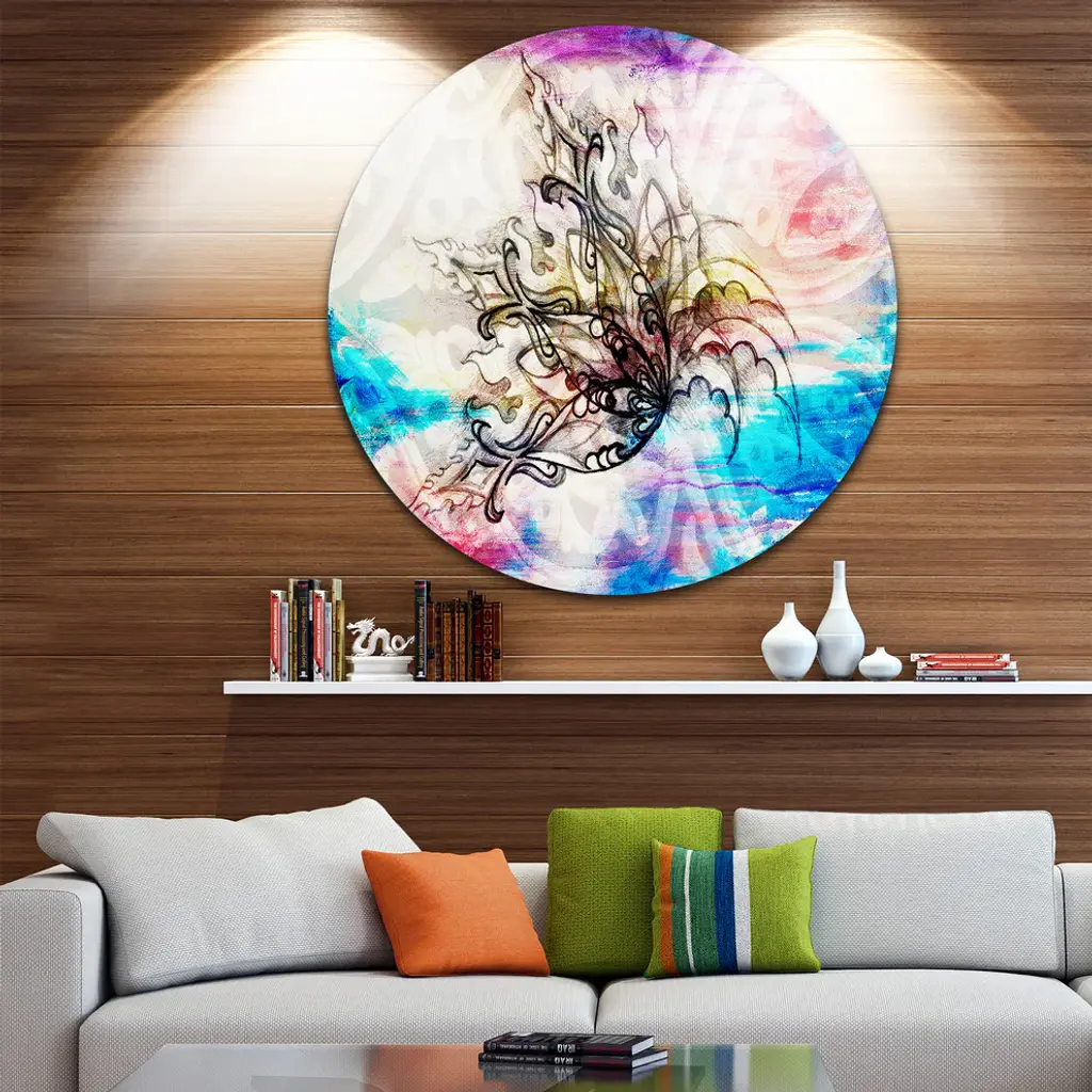 Bring Contemporary Abstraction to your home with this large Circle Metal wall art. This Blue Paper Flower and Flame Metal Artwork makes it the focal point of any room or office. - White Gloss Coating ensures colors are extra vibrant with light reflection.- Aluminum grade Sheet Metal with 1 inch mounting frame on the back giving the illusion that the artwork is floating on the wall..- Mounting Brackets are included along with instructions.- High Quality Digital images are created directly into a glossy aluminum panel producing a stunning and captivating print into the glossy finish of the metal.- Water, Fire and Scratch resistant HD Aluminum panels.- Looks better than any photo paper and guaranteed to last at least 20 years- Easy to clean with a microfiber cloth. Colors are far superior to regular Canvas Art. - Easy to Hang