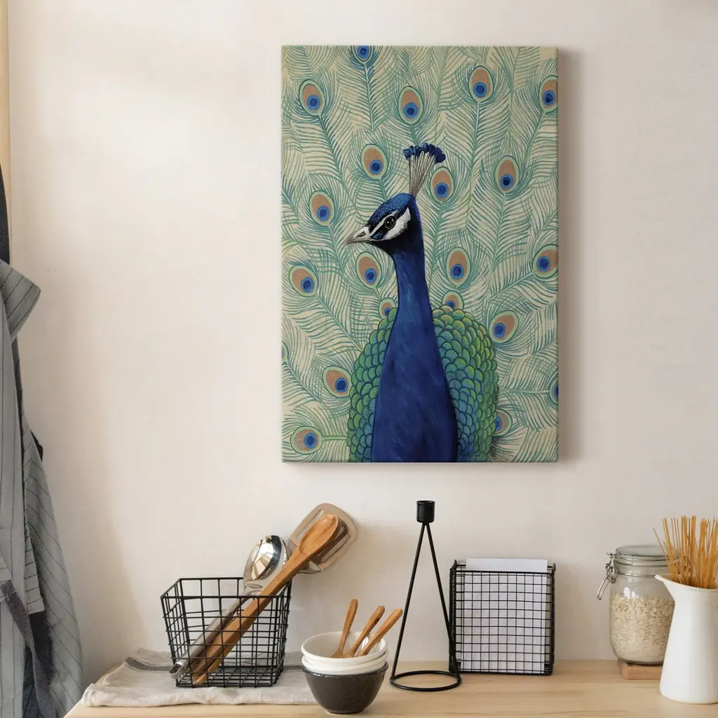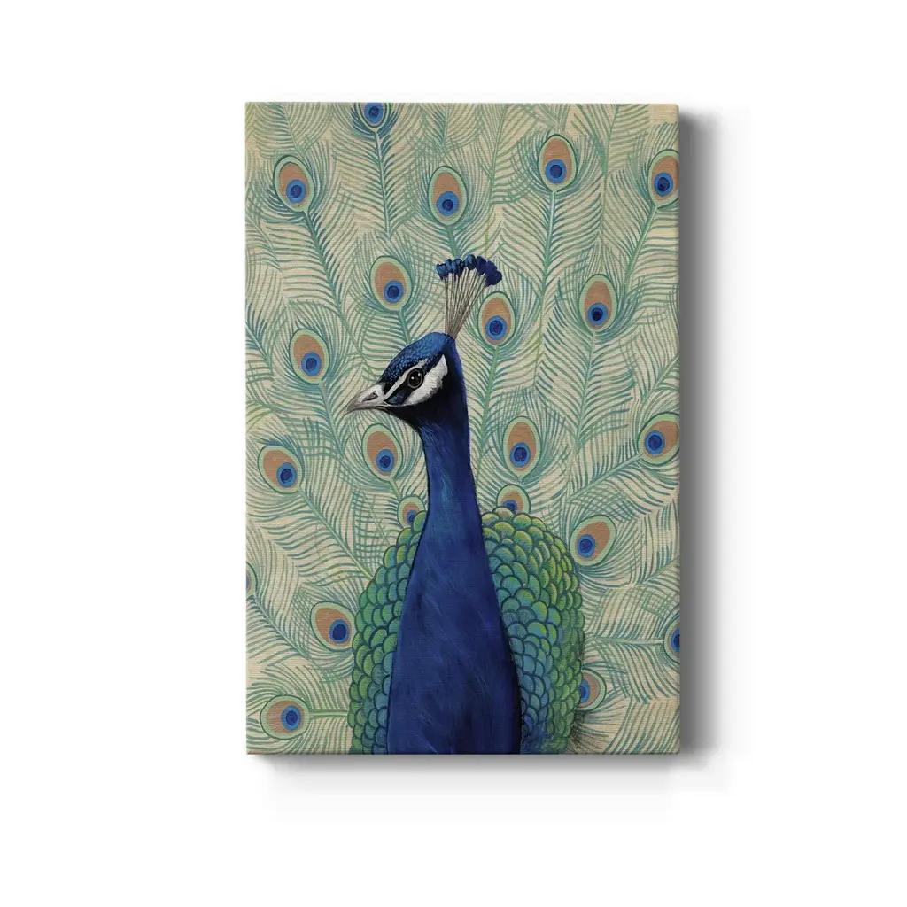 Blue Peacock II Premium Gallery Wrapped Canvas - Ready to Hang A premium hand stretched gallery wrapped canvas print created to last. Featuring a beveled a solid wood stretcher bar, each piece comes ready to hand 6 SIZES AVAILABLE 8''X12'' - Overall Size 12''X18'' - Overall Size 18''X27'' - Overall Size 24''x36'' - Overall Size 32''x48'' - Overall Size 40''x60'' - Overall Size Each piece is made to order. Built to Last Each piece comes ready to hang Solid wood stretcher Fade and Water resistant Made domestically