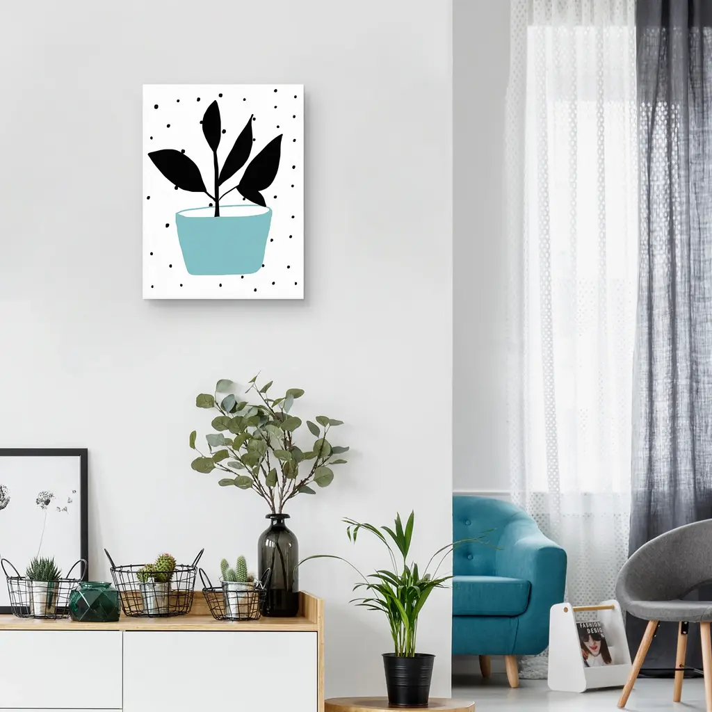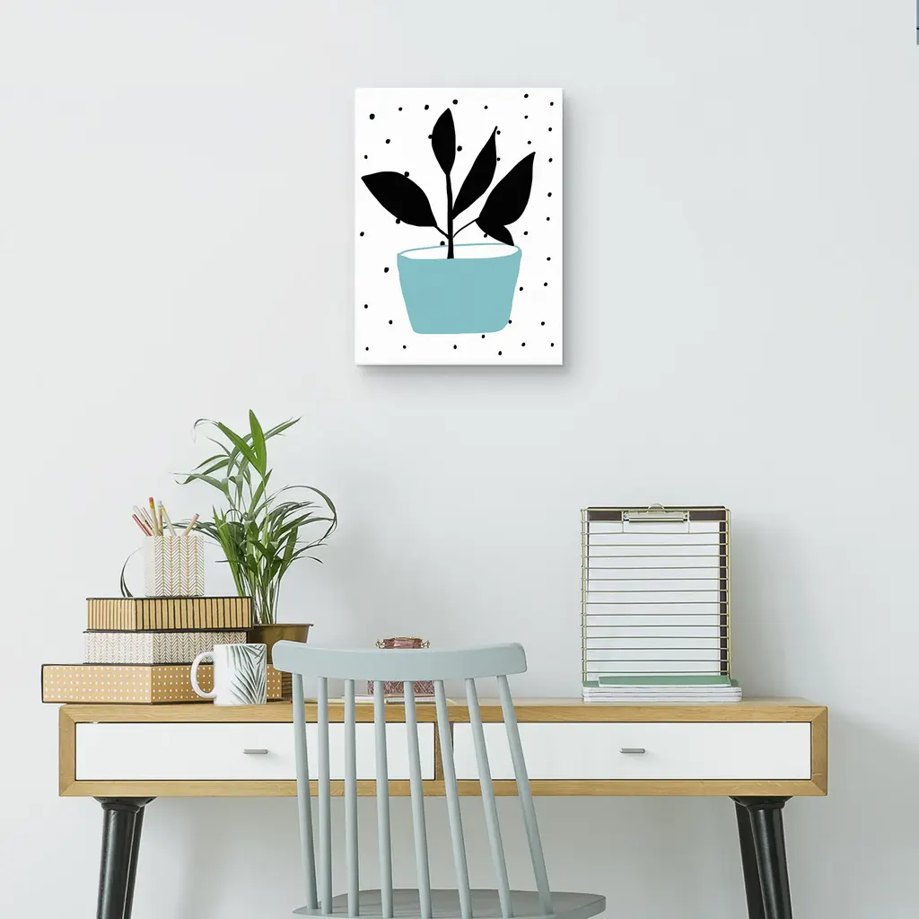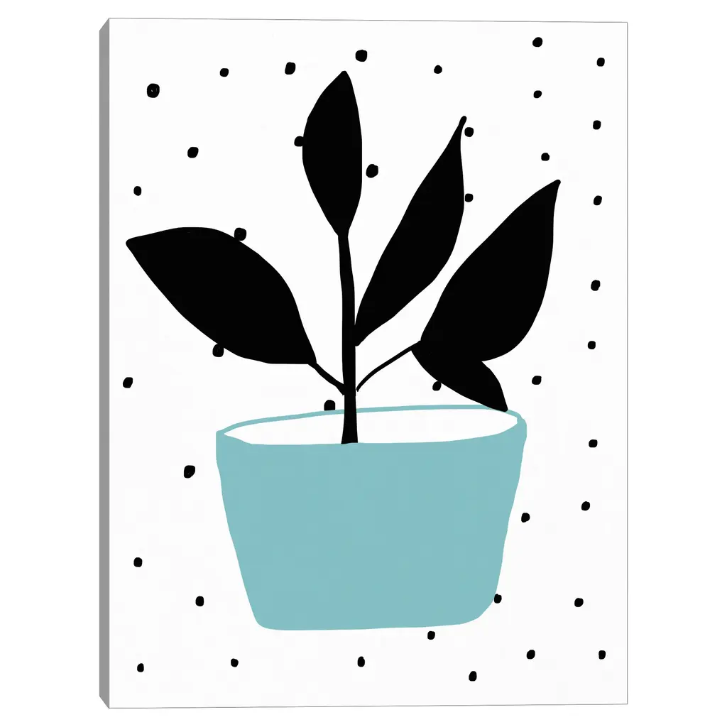 Blue Pot On Black Dots Canvas Art Print - 18x24