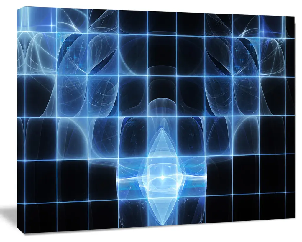 Blue Protective Metal Grids, Oversized Abstract Canvas Art Print, 60x40